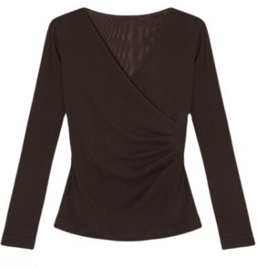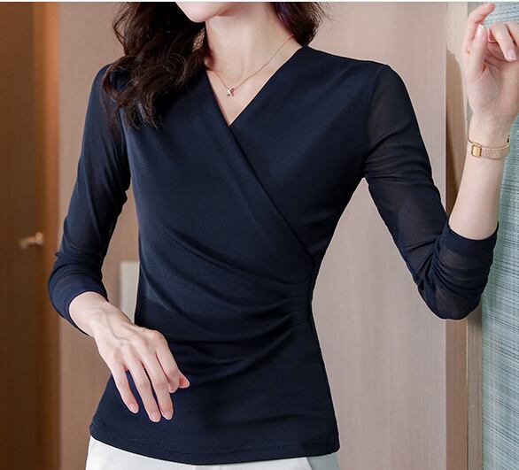女性らしいシルエットを引き立てる、カシュクールデザインの7分袖カットソー。