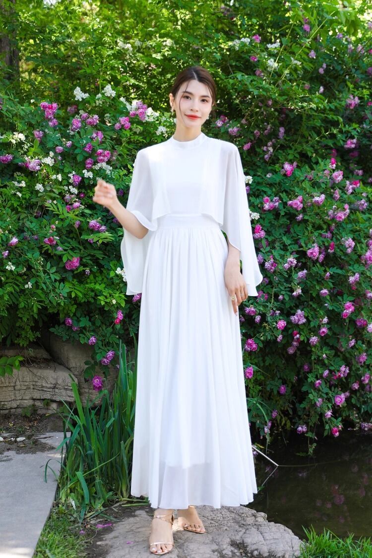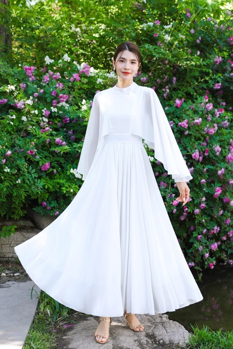 レディース ワンピース ドレス ロング フレアスリーブ ラウンドネック フレア シフォン かわいい 大人可愛い きれいめ シンプル カジュアル 上品 おしゃれ かっこいい レトロ エキゾチック こなれ感 個性的 クール モード系 エレガント 主役級 存在感 ナチュラル 色気 無地 春 秋 デート パーティー イベント コーデ 体型カバー モテ 清楚 インスタ映え スタイルアップ コスチューム 衣装 S M L XL 2XL 3XL 4XL プラスサイズ ぽっちゃり ホワイト ベーシックカラー 大人カラー
