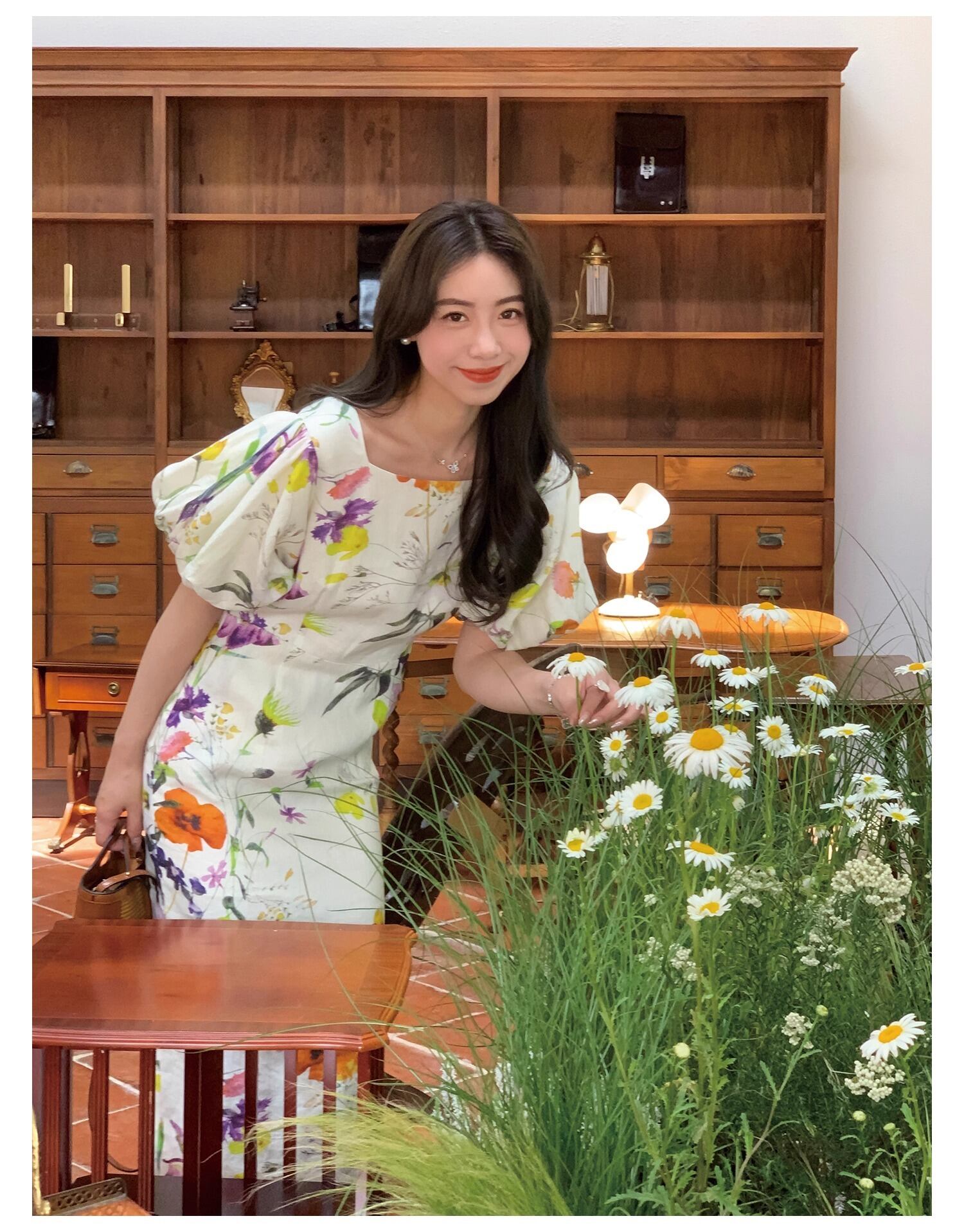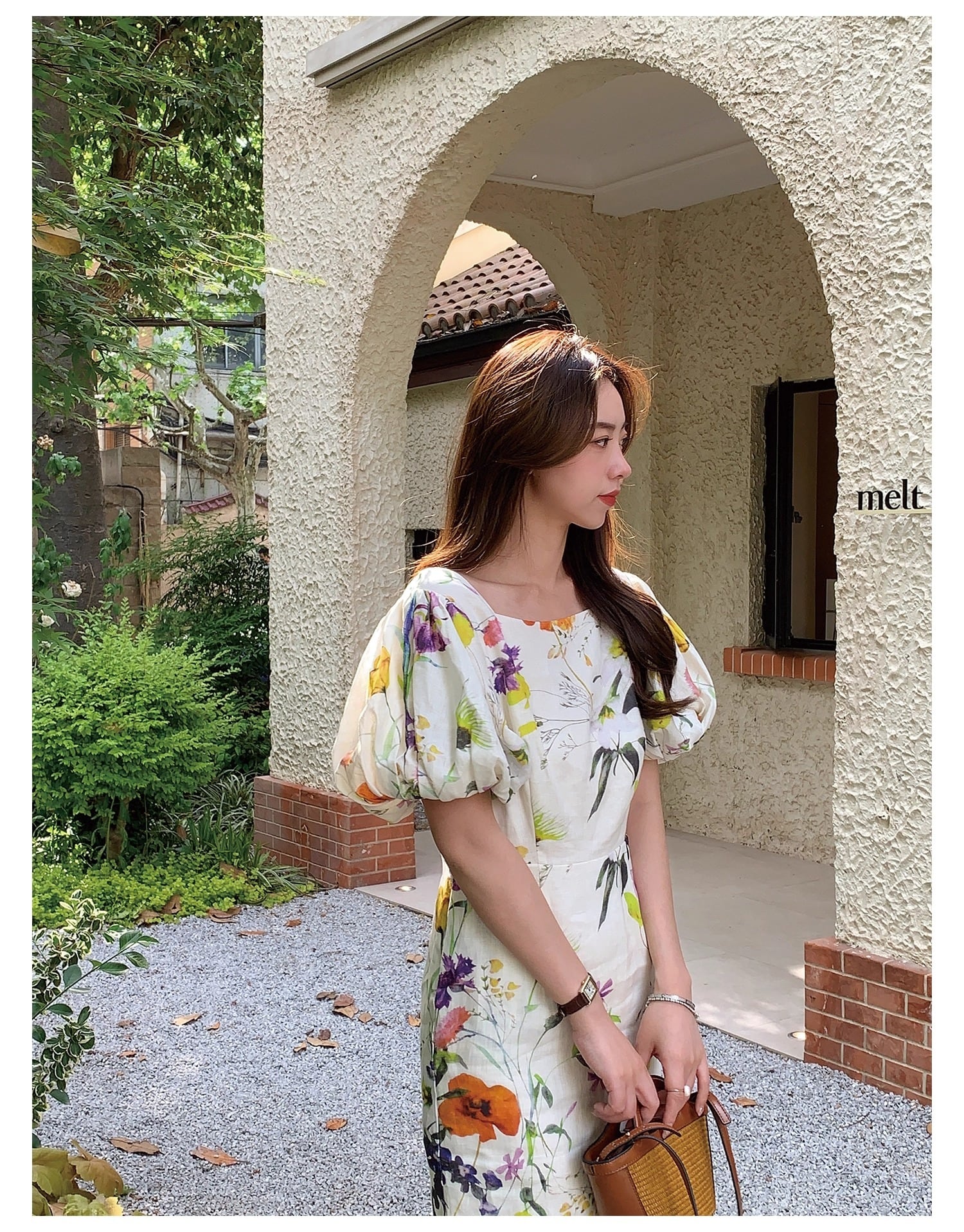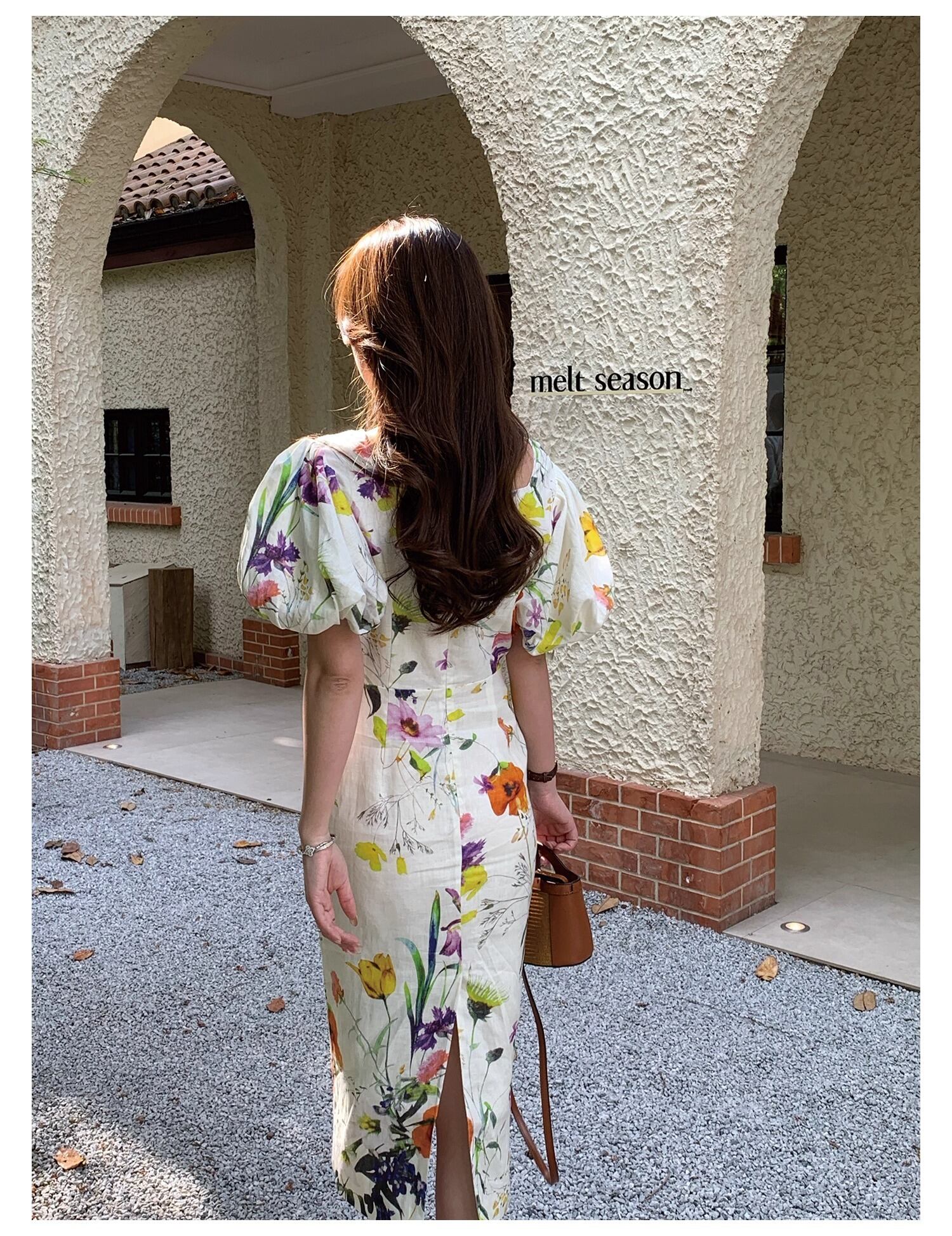 レディース ワンピース ミディ 半袖 パフスリーブ タイト スリム 細身 バックスリット ハイウエスト かわいい 大人可愛い きれいめ シンプル カジュアル 上品 おしゃれ かっこいい レトロ アジアン エスニック エキゾチック こなれ感 個性的 クール エレガント ナチュラル セクシー 花柄 春 夏 デート お出かけ イベント リゾート 旅行 レストラン 休日 バカンス ホテル ガーデン ショッピング コーデ 楽ちん 美脚 脚長 普段使い モテ 清楚 スタイルアップ コスチューム 高見え 格上げ S M