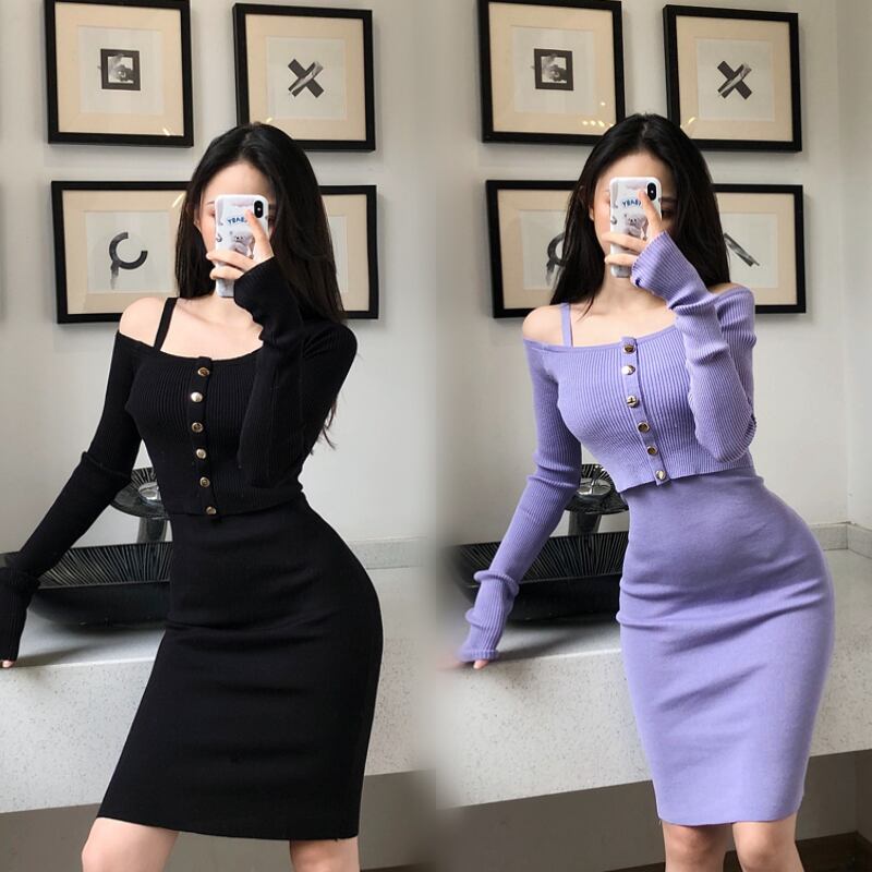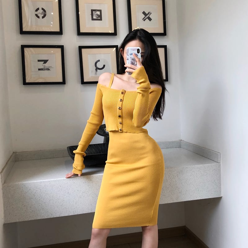 レディース ニットワンピース カーディガン風トップス セットアップ キャミワンピ スリップドレス ミニ 膝上 クロップド丈 長袖 オフショルダー タイト スリム 細身 ハイウエスト リブニット ストレッチ 伸縮性 かわいい 大人可愛い きれいめ シンプル おしゃれ こなれ感 ラフ 抜け感 都会的 セクシー 色気 センシュアル 無地 春 夏 秋 デート お出かけ 休日 韓国 オルチャン 楽ちん 普段使い 着回し モテ 肌見せ フリーサイズ ワンサイズ ブラック イエロー ピンク ライトブルー パープル