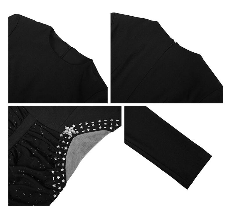 秋冬のパーティーシーンに映える、ミモレ丈のドレス。クルーネックのシンプルな首元と、アワーグラスラインを描くタイトなシルエットが、都会的でエレガントな印象を演出します。 サイドに施されたウエストを強調するデザインとハイウエストの切り替えが、スタイルアップを叶え、ビジューのさりげない輝きが華やかさをプラス。 ブラックのシックなカラーが、色気とセンシュアルな雰囲気を引き立てる上品な一着です。