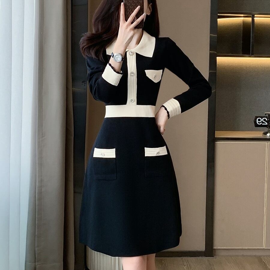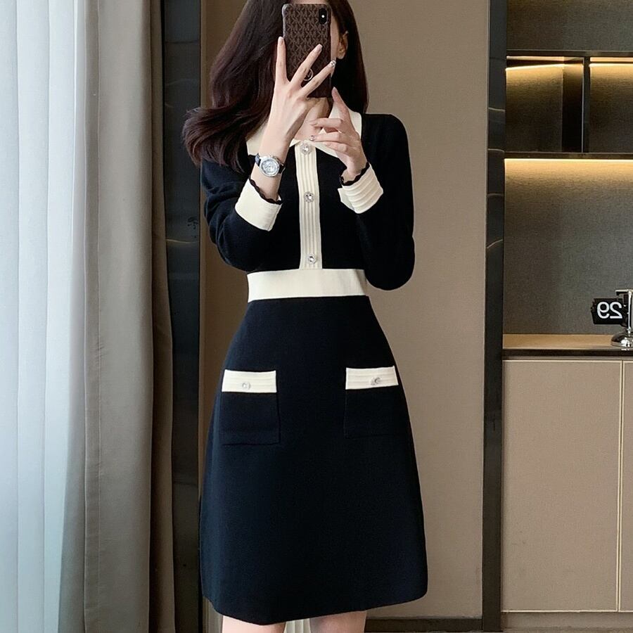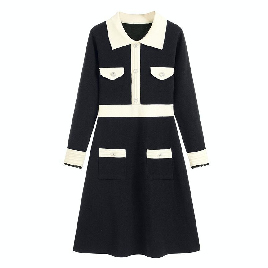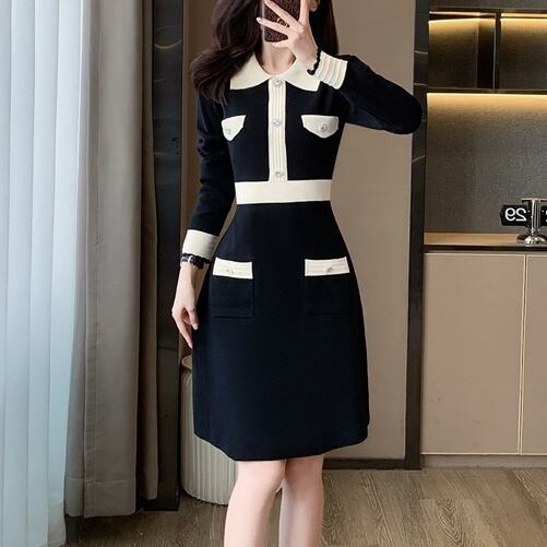 大人可愛いレディースワンピースドレスのご紹介です!この膝上丈のワンピースは、長袖と襟付きデザインが特徴で、シンプルながらも上品な印象を与えます。ポケットのビジューディテールが華やかさをプラスし、スリムなシルエットが美脚を引き立てることで、特別な日のコーディネートにぴったりです。秋冬お出かけやデート、パーティー、レストランでのひとときも、おしゃれに演出してくれます!
