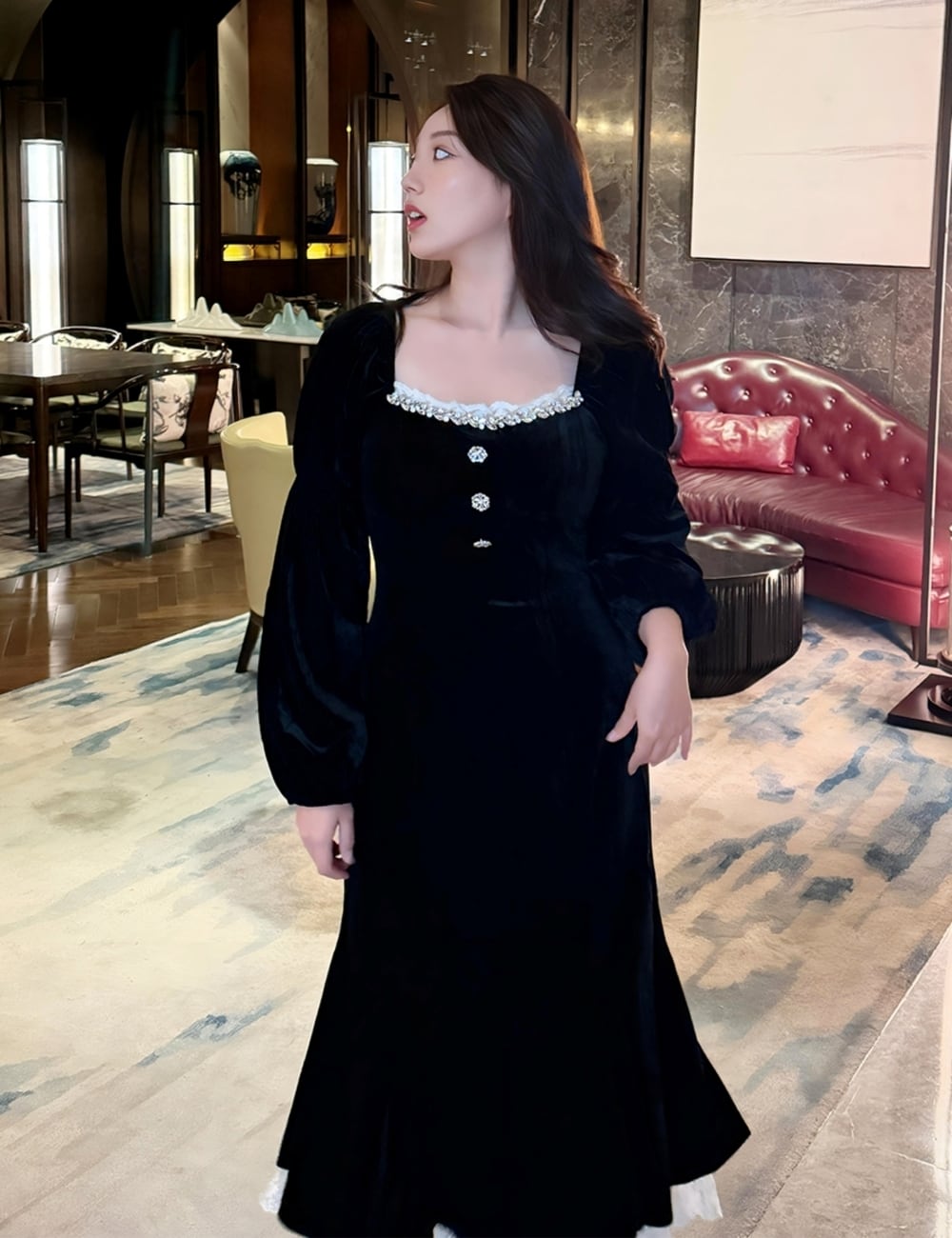 華やかさと品格を纏う、大人のためのベルベットドレス