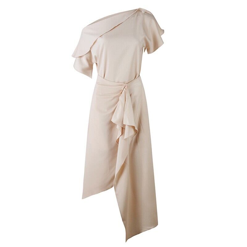 レディース スカート トップス セットアップ ツーピース ドレス ミモレ ロング 半袖 ワンショルダー アシンメトリー ドレープ セパレート フェミニン ハイウエスト 大人可愛い きれいめ シンプル 上品 おしゃれ エキゾチック こなれ感 エレガント モダン 抜け感 かっちり 都会的 シック ノーブル クリーン エフォートレス センシュアル 無地 春 夏 謝恩会 同窓会 お呼ばれ デート お出かけ パーティー レストラン ホテル 普段使い 清楚 トレンド スタイルアップ S M L XL アプリコット | ABCZ10