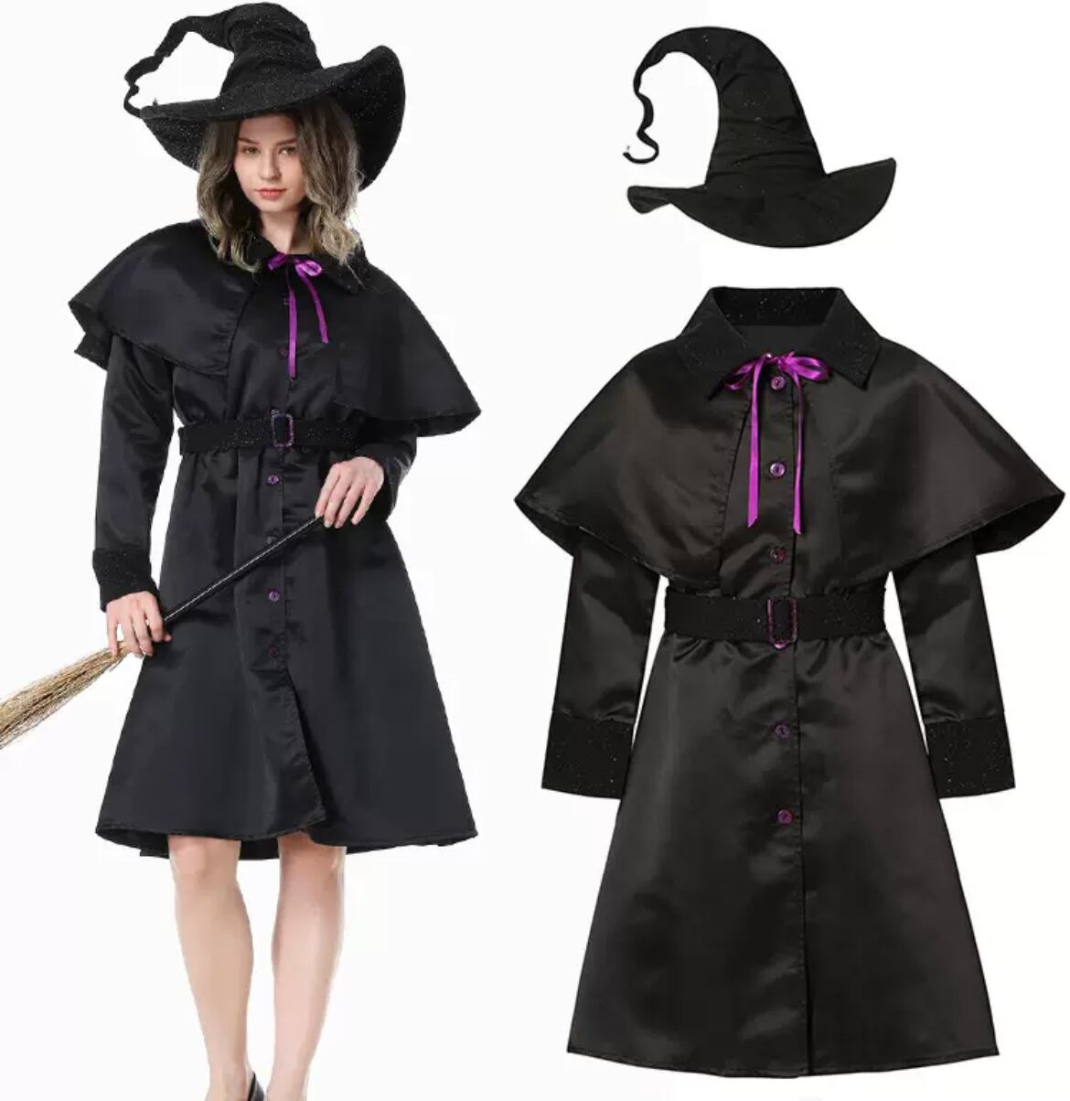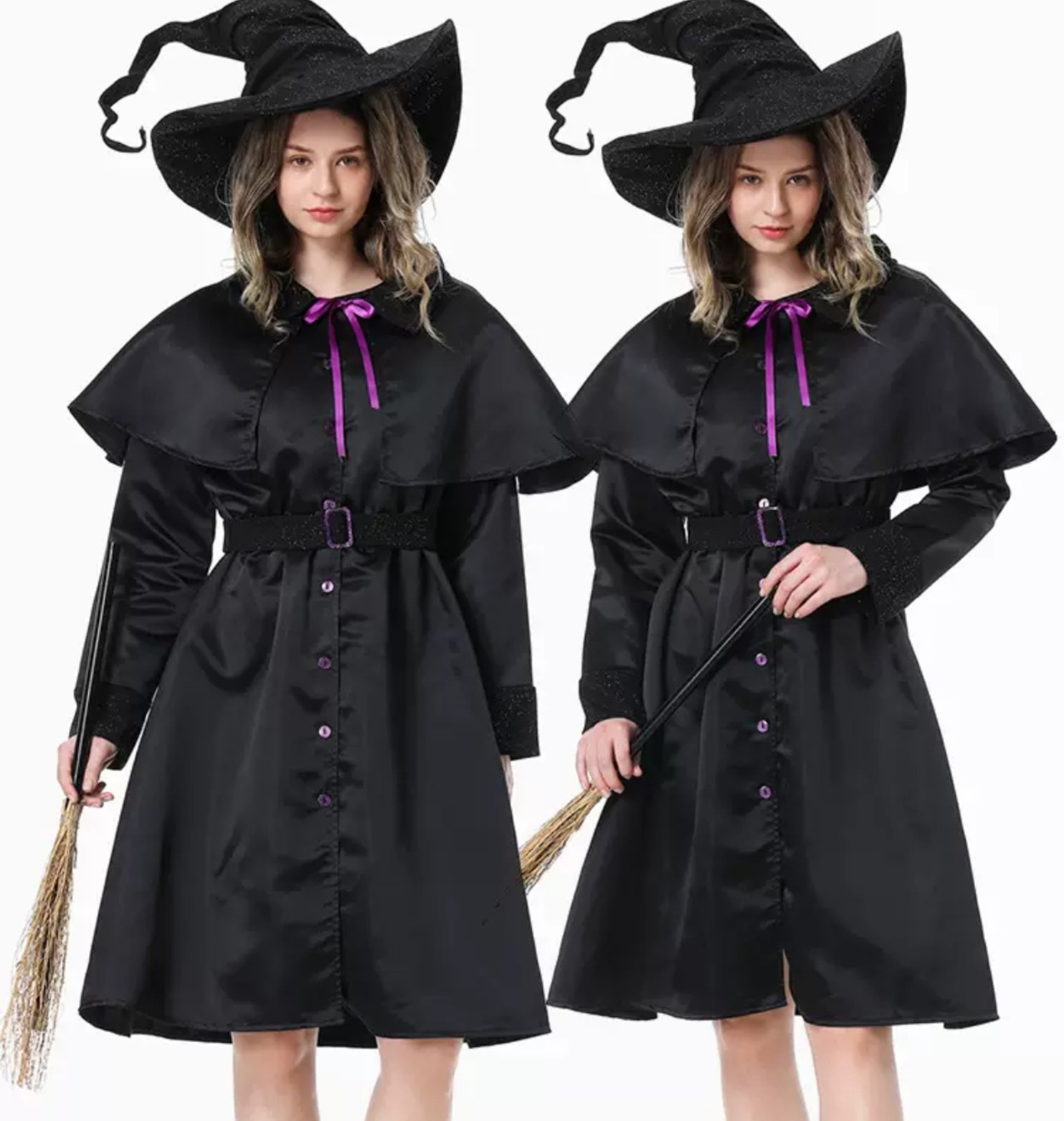ワンピース ドレス ケープ ベルト とんがり帽子 4点セット レディース 膝丈 長袖 Aライン フェミニン ドレープ リボン ウエストマーク 前開き 大人可愛い カジュアル おしゃれ こなれ感 ラフ 個性的 存在感 抜け感 ミステリアス 魔女 無地 秋 冬 ハロウィン 文化祭 学園祭 パーティー イベント コンサート ライブ コスプレ 演劇 ステージ パフォーマンス 韓国 オルチャン コーデ 楽ちん 体型カバー トレンド インスタ映え スタイルアップ コスチューム 衣装 仮装 M L XL ブラック | ABCZ10