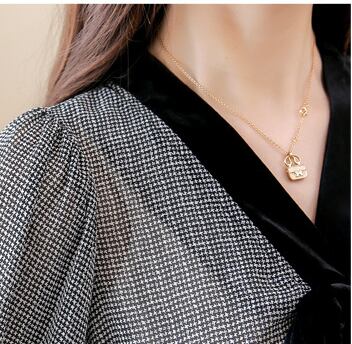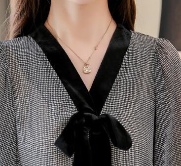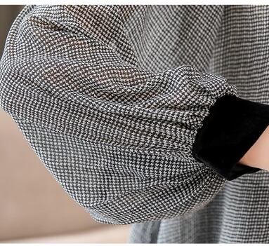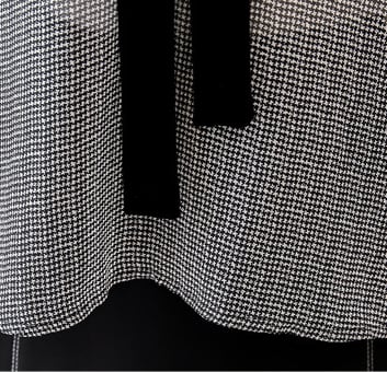 Vネックとパフスリーブの上品なシルエットに、異素材ミックスや格子柄の配色デザインを取り入れ、清楚でいて存在感のある着こなしを演出します。