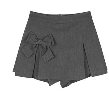 角襟にボウタイをあしらった半袖トップスと、リボンが可愛いタックプリーツのミニスカパンが好相性で、主役級の存在感を放ちます。