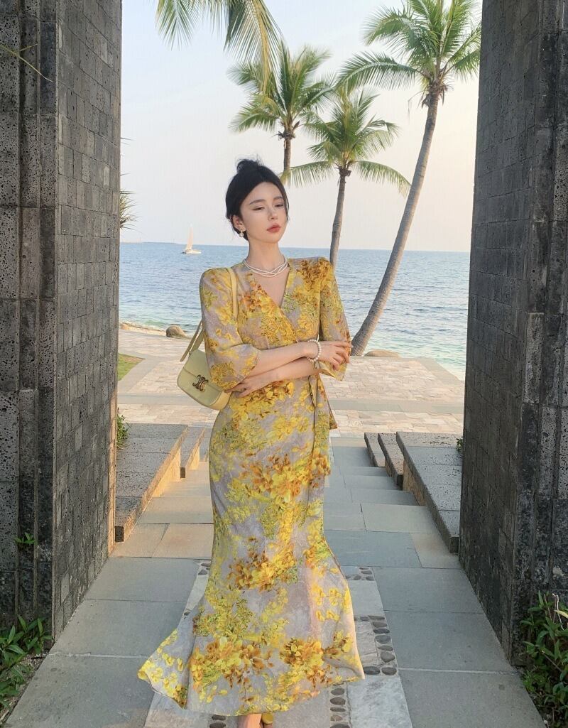 上品でおしゃれなセミフレアタイトドレスです!ハイウエストデザインが、体型カバーとスタイルアップを実現し、美脚効果も抜群です。大人可愛い印象を与えるこのアイテムは、デートやお出かけはもちろん、旅行や海、ビーチなどの休日にもぴったりです。シンプルでありながら個性的なデザインは、モダンさとレトロ感が絶妙に融合し、見る人を魅了します。爽やかで清潔感があり、華やかなボタニカルデザインが、春夏シーズンに華やかさをプラスしてくれます。