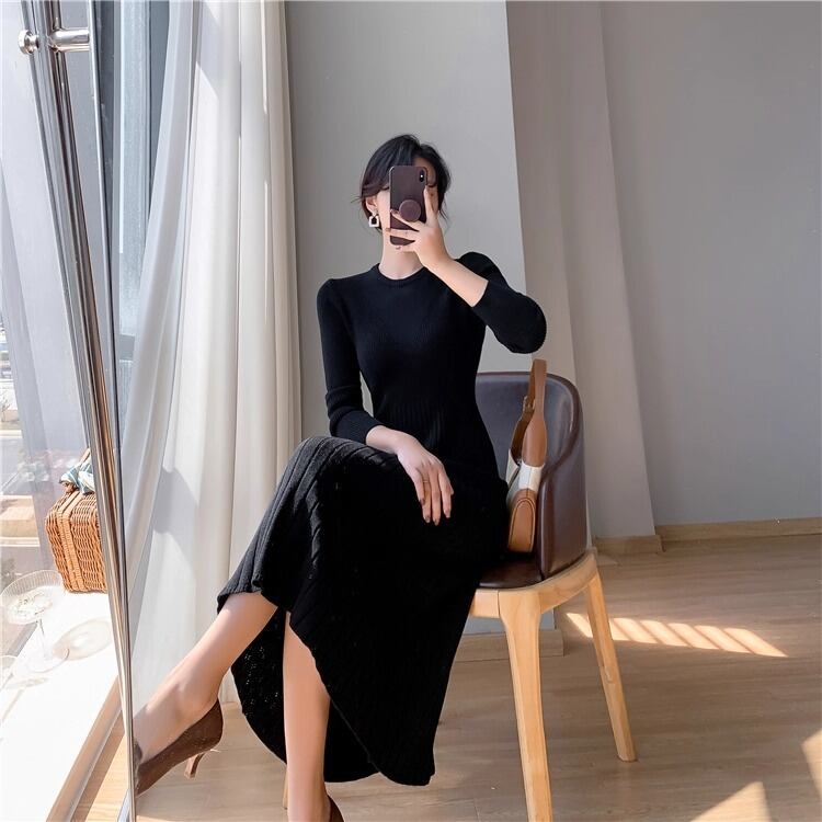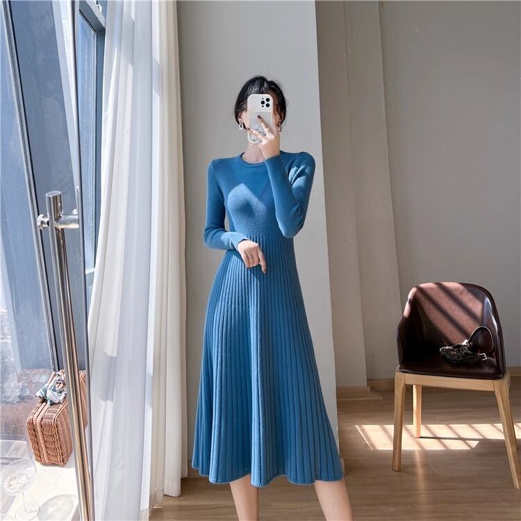 レディース ワンピース ニットワンピ 膝下 ミディ 長袖 ラウンドネック タイト スリム Aライン ハイウエスト かわいい 大人可愛い きれいめ シンプル カジュアル 上品 おしゃれ こなれ感 ラフ 個性的 クール エレガント ナチュラル セクシー 色気 可愛い 清潔感 無地 秋 冬 デート お出かけ 旅行 休日 ショッピング カフェ コーデ 楽ちん 暖かい 防寒 脚長 普段使い モテ 清楚 スタイルアップ あったか S M L XL ブラック オフホワイト カーキ ブルー ベーシックカラー 大人カラー