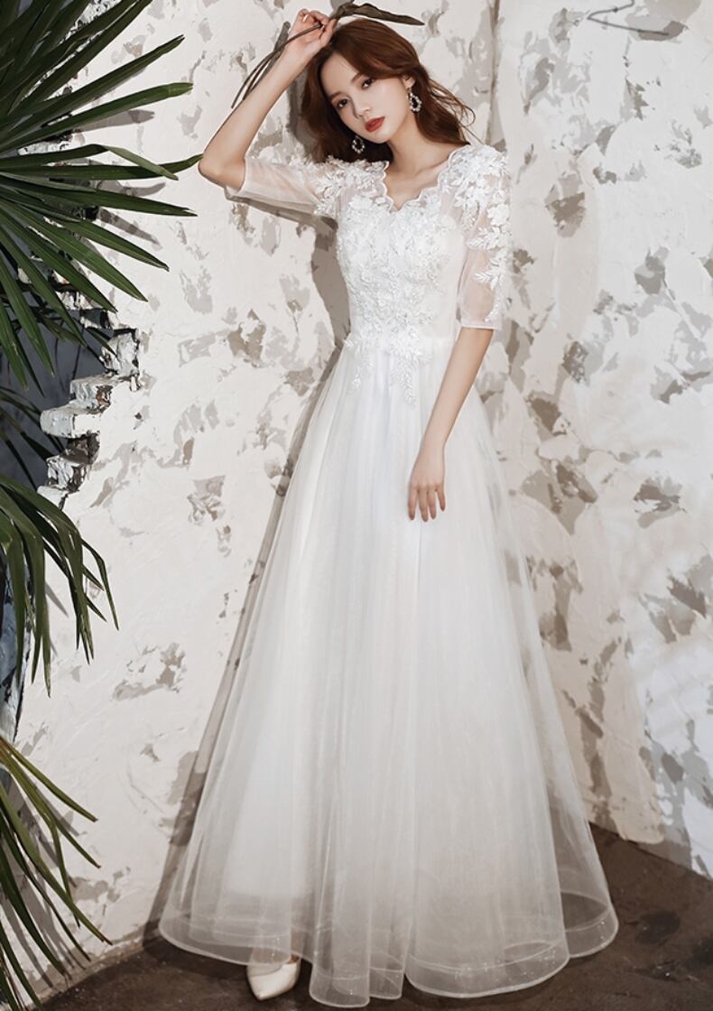 レディース ドレス カラードレス ウェディング パーティー 結婚式 披露宴 演奏会 フォーマル お色直し ロング マキシ 半袖 5分袖 Vネック スカラップネック フレア Aライン イブニング 刺繍 ハイウエスト 透け感 シアー きれいめ シンプル 大人可愛い 上品 クラシック 清楚 エレガント シック 華やか クラシカル ノーブル リュクス ロマンティック 花柄 フラワー スタイルアップ 春 夏 小さい 大きい ぽっちゃり プラスサイズ XS S M L XL 2XL 3XL 白 黒 ホワイト ブラック