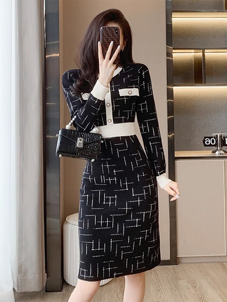大人可愛いデザインの膝丈ワンピースは、シンプルなラウンドネックとエレガントなタイトシルエットが魅力です。ウエストマークが効果的にスタイルアップを演出し、清潔感のあるクールな印象を与えます。カジュアルからきれいめまで、幅広いシーンに対応。秋冬のデートやパーティー、レストランなど、さまざまなイベントで活躍すること間違いなしです。個性的でおしゃれなアイテムをお探しの方にぴったりです!