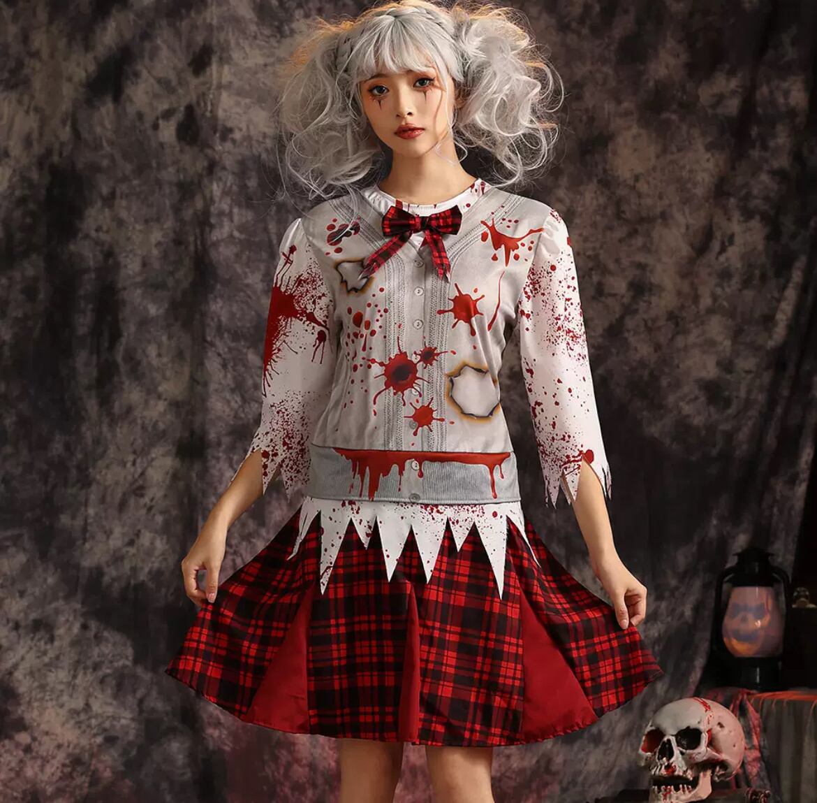 ワンピース オールインワン 制服 ミニスカート ミニ 7分袖 襟付き フレア Aライン セーラー風 セパレート フェミニン ストリート リボン ハイウエスト 大人可愛い カジュアル おしゃれ こなれ感 ラフ 抜け感 ゴス ホラー ゾンビ 女子高生 ユニーク 不気味 グロテスク ポップ チェック ハロウィン 文化祭 学園祭 学生 パーティー イベント コスプレ 韓国 オルチャン コーデ 楽ちん トレンド インスタ映え スタイルアップ コスチューム 衣装 仮装 フリーサイズ ワンサイズ レッド