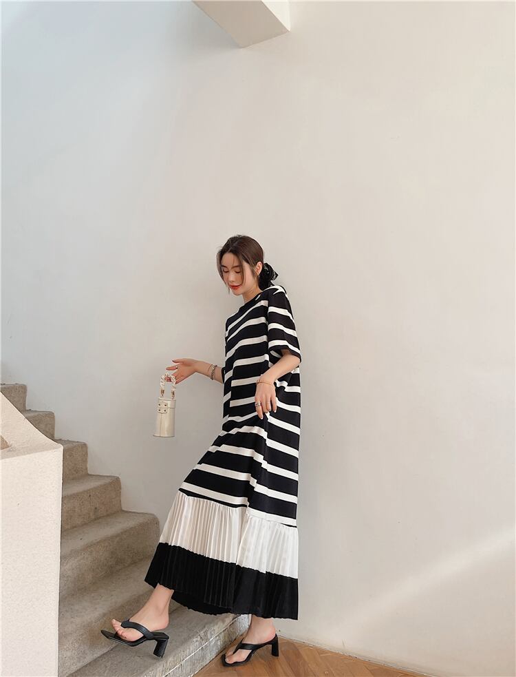 モノトーンの太ボーダーがおしゃれなマキシ丈ワンピース。
