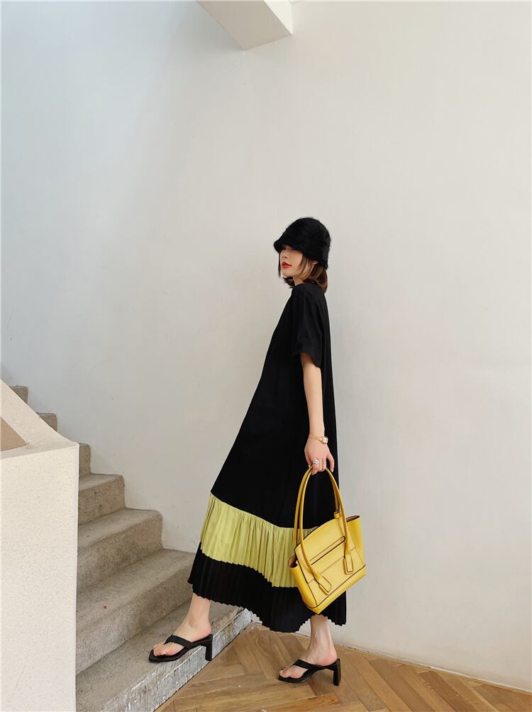 ふんわり広がるプリーツ切り替えが、大人の抜け感を演出します。ゆったりシルエットで体型カバーしつつ、楽ちんに着られる一枚。