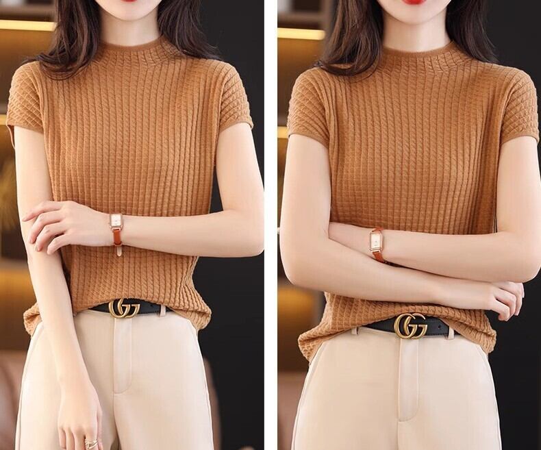 レディース トップス ニット セーター 半袖 リブ編み ハイネック シンプル 上品 カジュアル キレイめ 大人可愛い コンパクト 美シルエット 体型カバー インナー 無地 着回し抜群 春 夏 誕生日 発表会 授業参観 ミーティング プレゼン ママ 10代 20代 30代 40代 50代 オフィス ビジネス OL 学生 デート ナチュラル ベーシック 快適 韓国 楽ちん 普段使い 着回し モテ 清楚 定番 スタイルアップ S M L XL 2XL 3XL ホワイト ブラック ブラウン ベージュ グリーン
