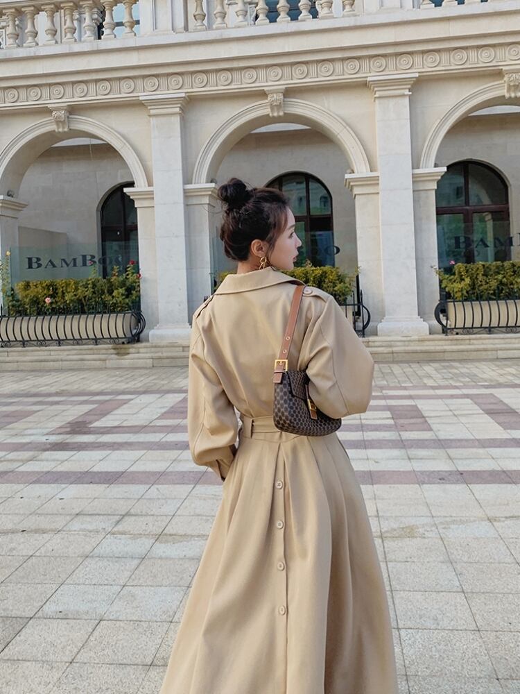 ロング丈のフレアシルエットが、フェミニンでロマンティックな印象を与えるトレンチコート。ウエストマークでスタイルアップを叶えつつ、ゆったりとした着心地で動きやすさも兼ね備えています。ポケット付きで実用性もあり、春や秋の普段使いからお出かけまで幅広く活躍。シンプルながら抜け感のあるデザインは、清楚で上品な雰囲気を演出します。