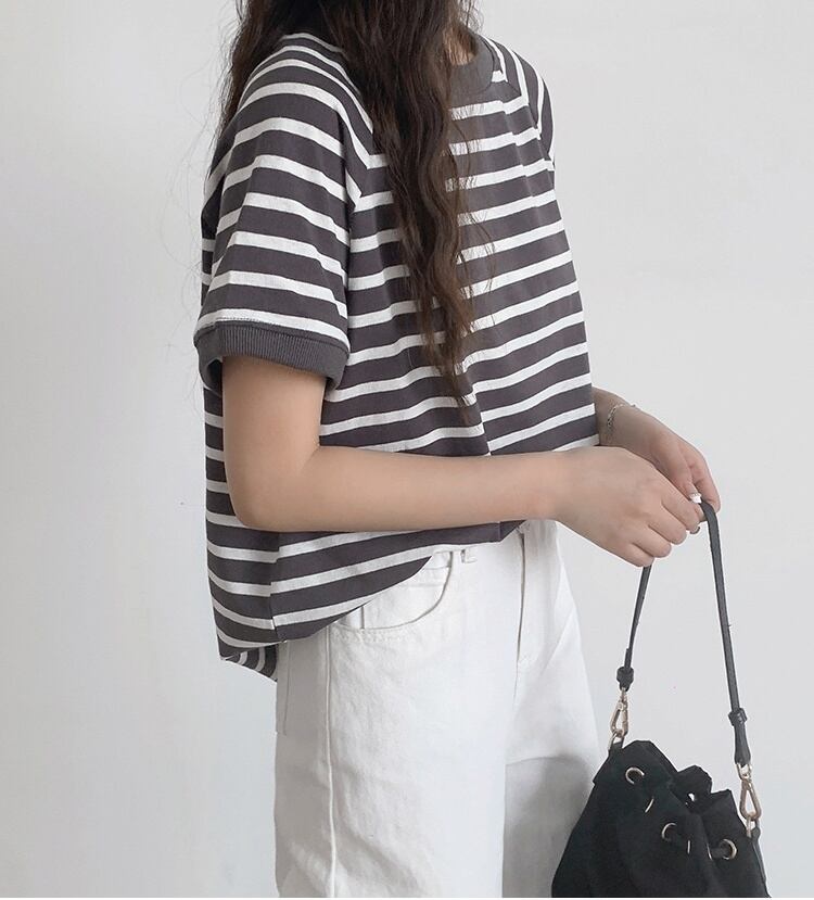 大人可愛いシンプルなデザインで、カジュアルからきれいめスタイルまで幅広く活躍するミディ半袖Tシャツです。都会的でナチュラルな印象を与えつつも、ボーダー柄がさりげなくおしゃれ感を演出します。普段使いから、デートやお出かけ、カフェや女子会まで様々なシーンで重宝します!