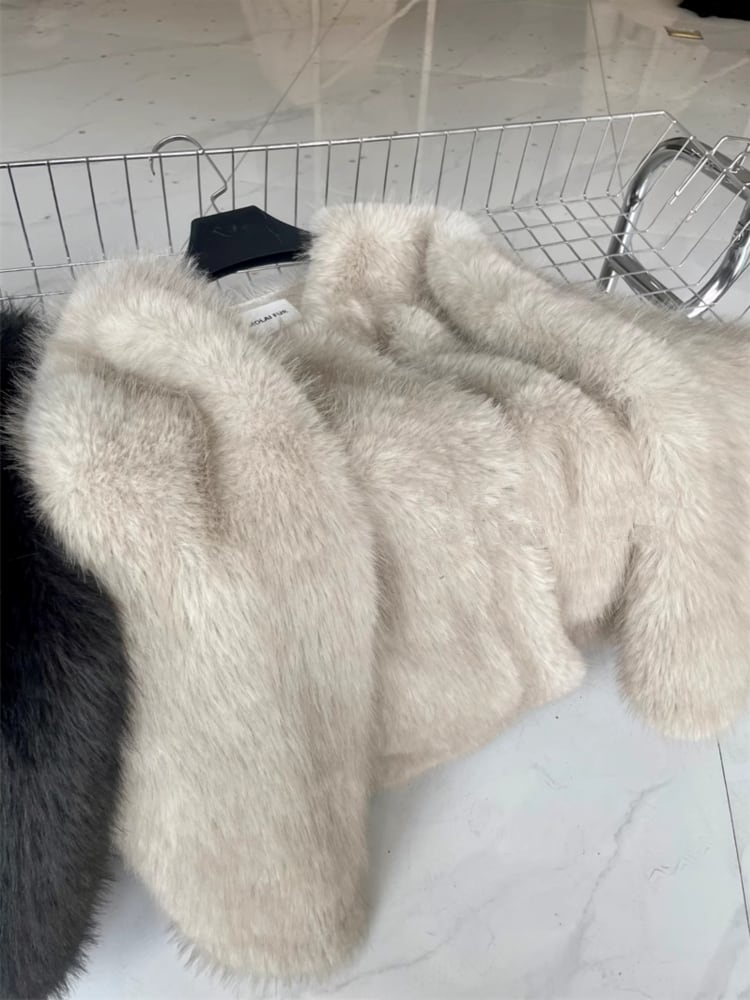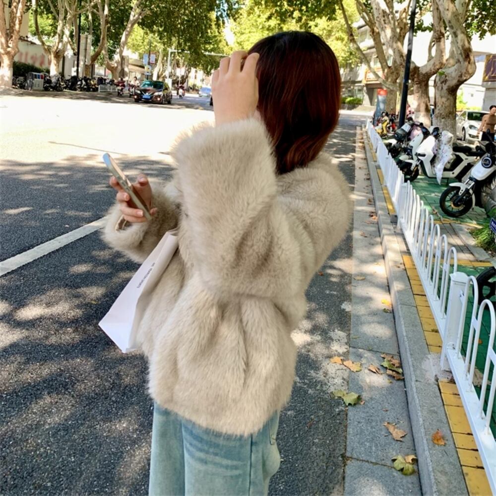 秋冬のコーデに映える、ふわふわのフェイクファーを使用したショートコート。ラフでゆったりとしたシルエットが抜け感を演出し、ポケット付きで実用性も抜群。オフホワイトとオートミールの柔らかなカラーが、可愛さと高級感を両立します。普段使いはもちろん、ちょっとしたお出かけにもぴったり。個性的でエッジィな雰囲気を楽しみたい方におすすめの一着です。