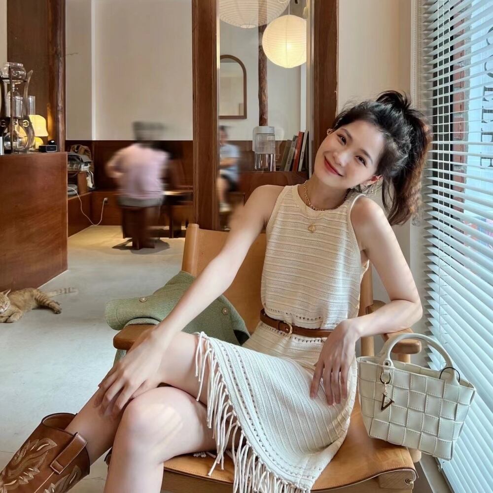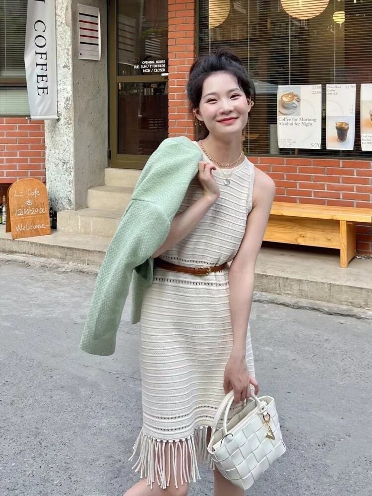 レディース ワンピース サマーニット ミニ ショート 袖なし ノースリーブ ラウンドネック クルーネック Aライン ウエストマーク ハイウエスト フリンジ ベルト付き かわいい きれいめ シンプル カジュアル おしゃれ レトロ こなれ感 エレガント 抜け感 キュート ナチュラル シック 牧歌的 爽やか 可愛い 清潔感 クリーン エフォートレス フォークロア センシュアル 春 夏 デート お出かけ リゾート 旅行 休日 楽ちん 普段使い 清楚 スタイルアップ 通気性 リラックス S M L XL ホワイト