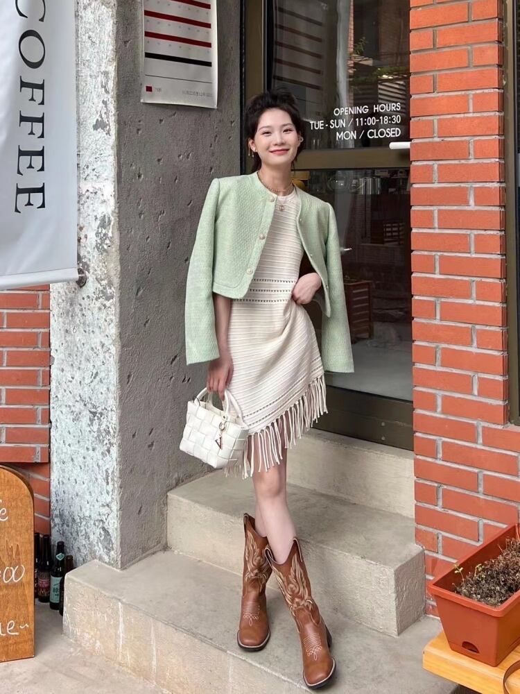 どこか懐かしさを感じるレトロなデザインに、フォークロアのエッセンスを加えたホワイトワンピース。ミニ丈のAラインが爽やかで可愛らしく、ベルト付きのウエストマークでメリハリのあるスタイルに。ノースリーブで涼しげな印象を与えつつ、フリンジのディテールが抜け感をプラス。春夏のリゾートや旅行にもぴったりな、清楚でナチュラルな装いが完成します。