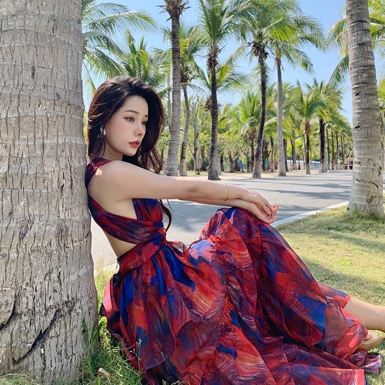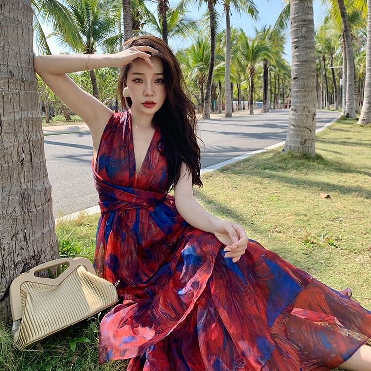 リゾート気分を高める、主役級のロングサンドレス