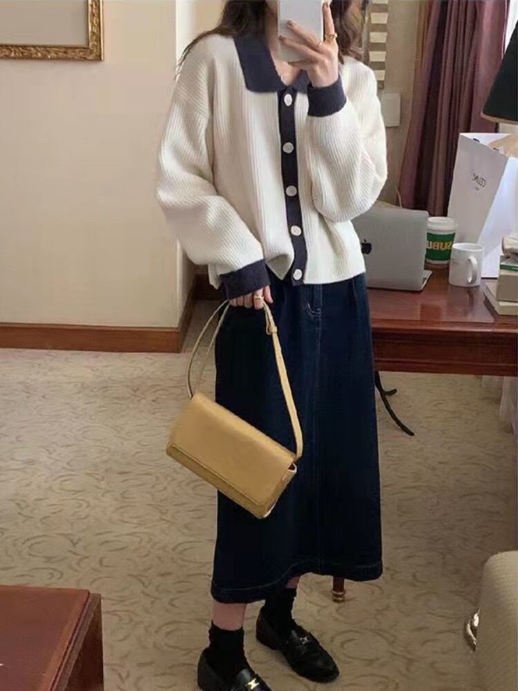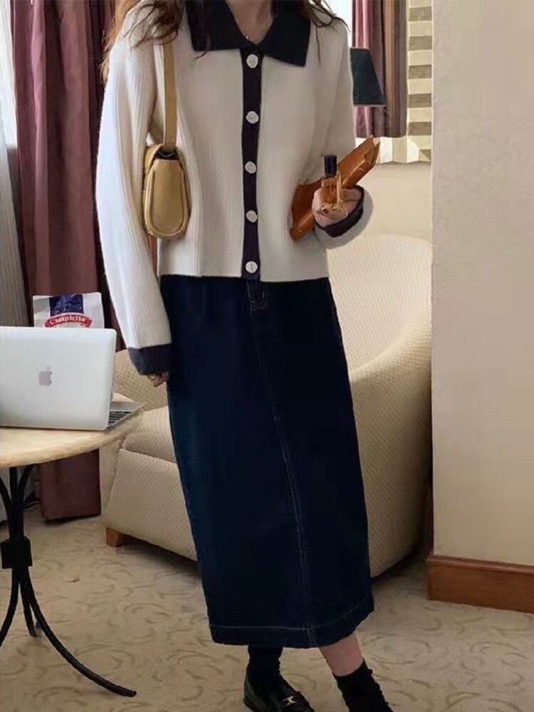 ドロップショルダーとポロカラーが特徴の、ゆったりとしたリブニットカーディガン。バイカラーデザインがレトロでこなれた印象を演出し、ルーズなシルエットが抜け感とリラックス感を両立します。秋冬の定番アイテムとして、楽ちんに着られながらも体型カバーも叶う優秀デザイン。シンプルでありながらトレンド感のある一枚は、普段使いにもぴったりです。