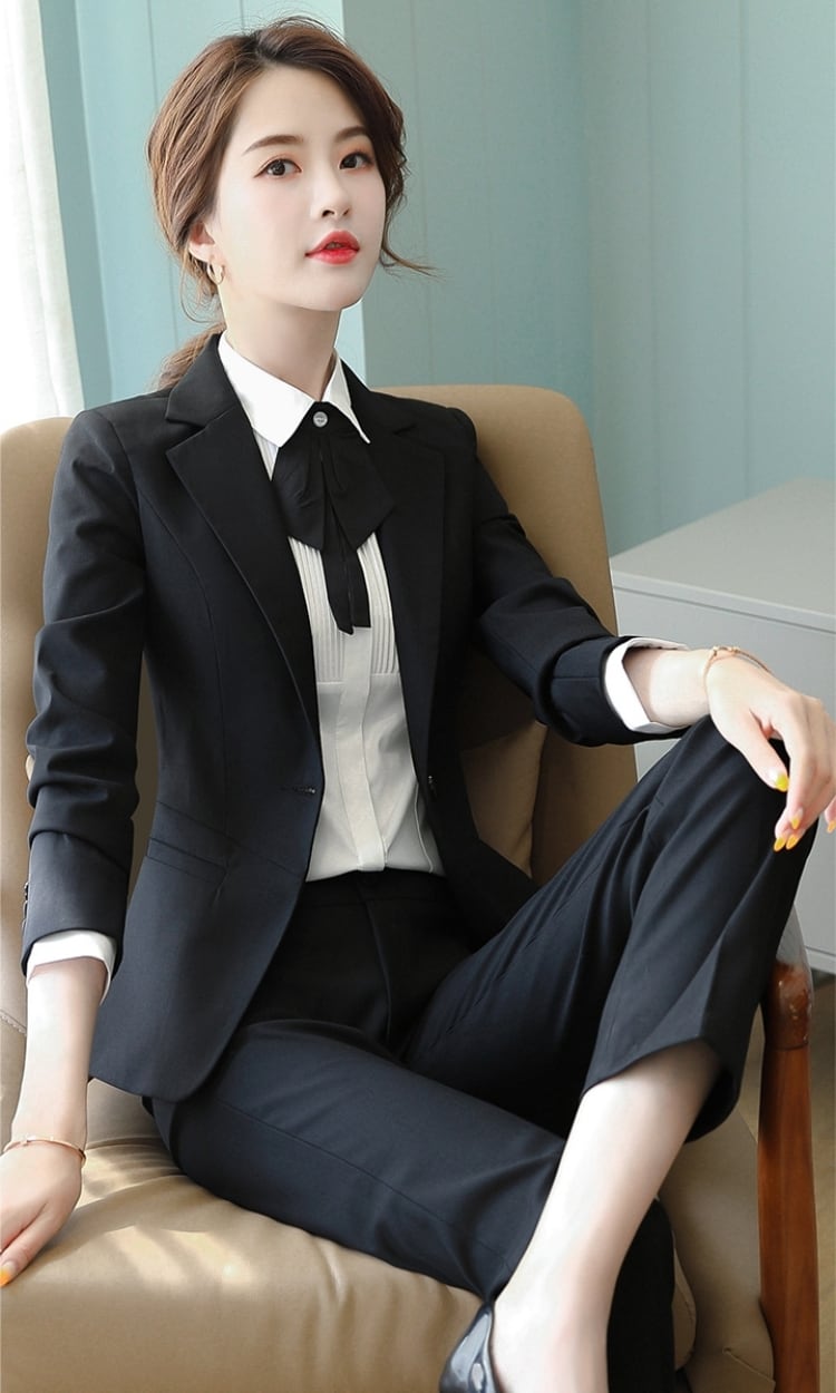 ジャケット・シャツ・スラックス/スカートの3点が揃ったスーツセットアップ。細身のスリムシルエットがスマートで、かっちりとしたフォーマル感の中にもモダンな抜け感を演出します。シンプルで上品なデザインは、きれいめなコンサバスタイルにもぴったり。ベーシックながらもリュクスな雰囲気が漂い、ビジネスからセレモニーまで幅広く活躍します。S~5XLまでの豊富なサイズ展開で、自分らしい着こなしが叶います。