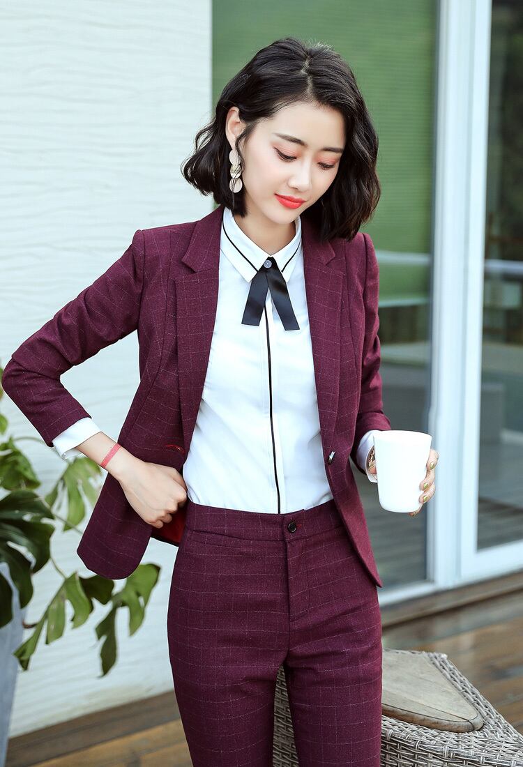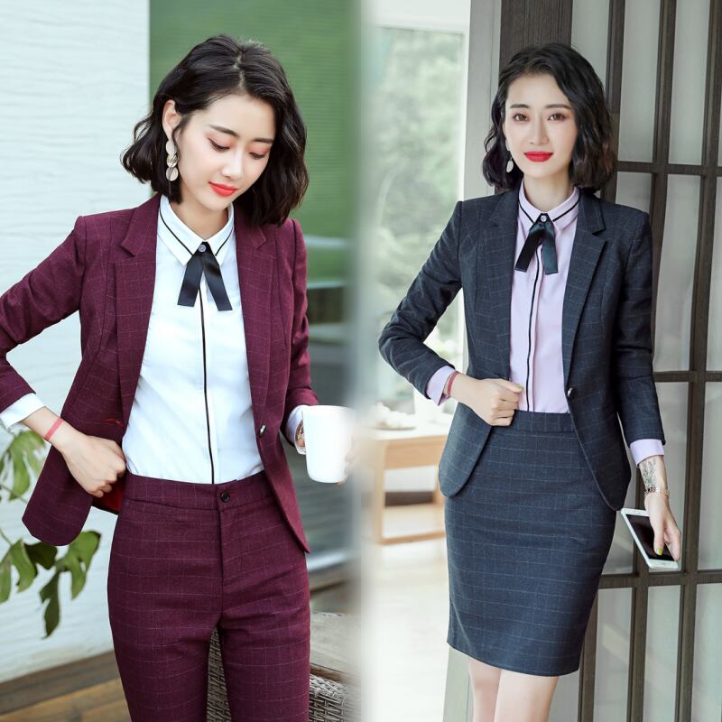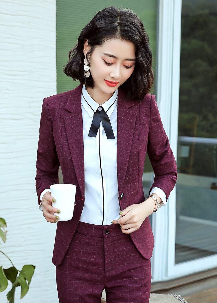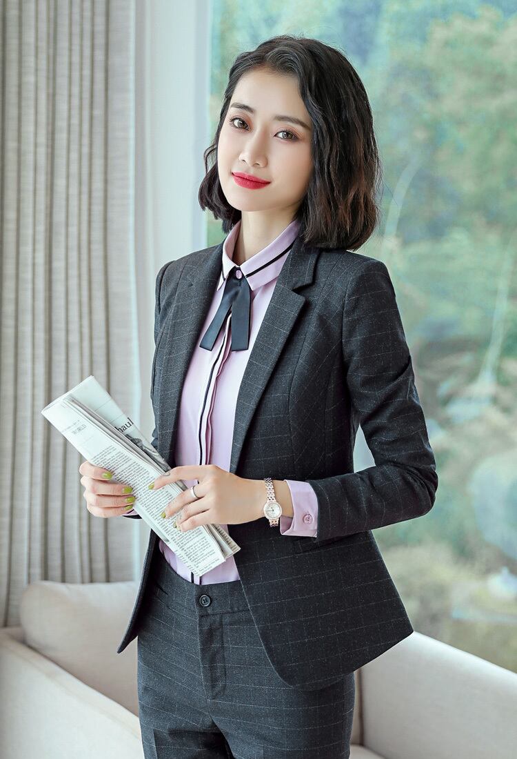 ジャケットとスラックス/スカートのスーツがセットになった、スマートでかっちりとした印象のツーピース。細身のシルエットがスタイルを美しく見せ、チェック柄がプレッピーで上品な雰囲気を演出します。シンプルながらもリュクスな存在感があり、フォーマルな場面はもちろん、きれいめな普段使いにも活躍。ブラック・ネイビー・バーガンディの3色展開、S~4XLまでの豊富なサイズで、自分らしい着こなしが叶います。