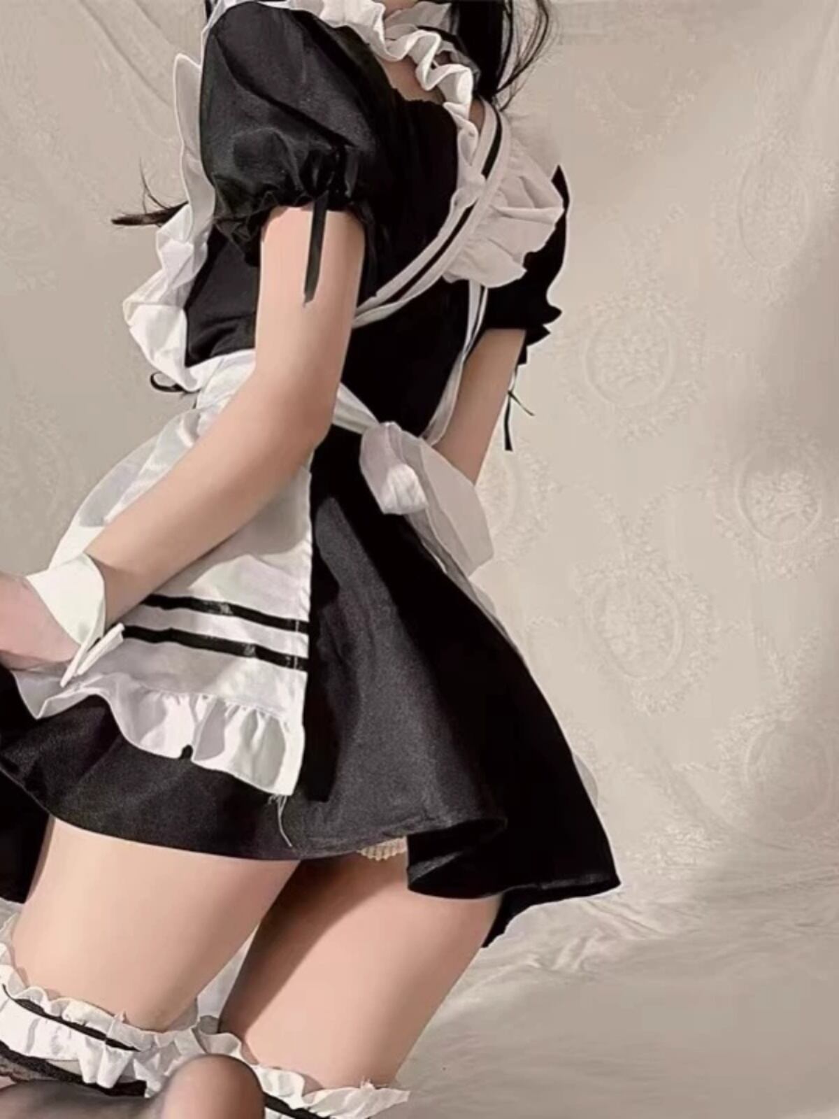 文化祭やハロウィン、撮影会など、どんなイベントでも映える定番のメイド服コスチュームセット。かわいらしいパフスリーブに、フレアなAラインがガーリーな印象を引き立てます。フリルとリボンがアクセントになり、ハイウエストでスタイルアップも叶うデザイン。ドレス、エプロン、カチューシャ、チョーカー、カフブレスレット×2、ガーターリング×2がすべて揃ったフルセットで、届いたその日からすぐに主役になれる一着です。キュートで華やかな装いを楽しみたい方におすすめです。