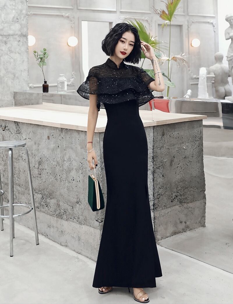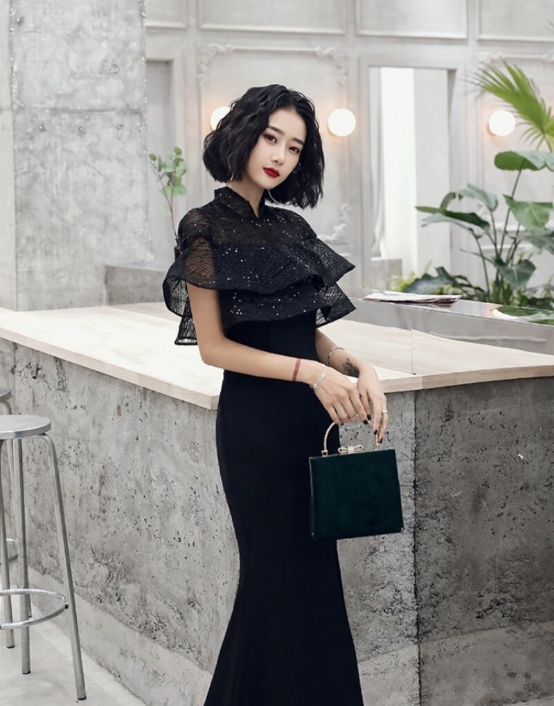 スタンドカラーとケープスリーブが印象的なこのマキシ丈ドレスは、シンプルながらも上品で、クールな存在感を放ちます。ソフトマーメイドラインが美しいシルエットを描き、スリットがさりげない肌見せを演出。春夏のパーティーシーンにぴったりな、エキゾチックでエレガントな一着です。ブラックとワインレッドの2色展開、XS~3XLまで対応しており、小さいサイズから大きいサイズまで幅広くご用意。シックで都会的なスタイルを求める方におすすめです。