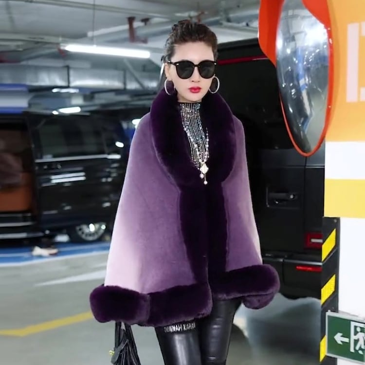 深みのあるグラデーションが美しいケープコートは、ふわふわのファーと柔らかなニット素材が織りなす、上品で華やかな一着。Aラインのシルエットが体型を自然にカバーし、ゆったりとしたフリーサイズでリラックス感も抜群。お呼ばれやパーティーはもちろん、休日のお出かけにもぴったりなドレッシーなデザインです。抜け感のあるエフォートレスな着こなしで、普段使いにも高見えを叶えます。秋冬のコーディネートに、エレガントでシックな彩りを添えてみませんか。