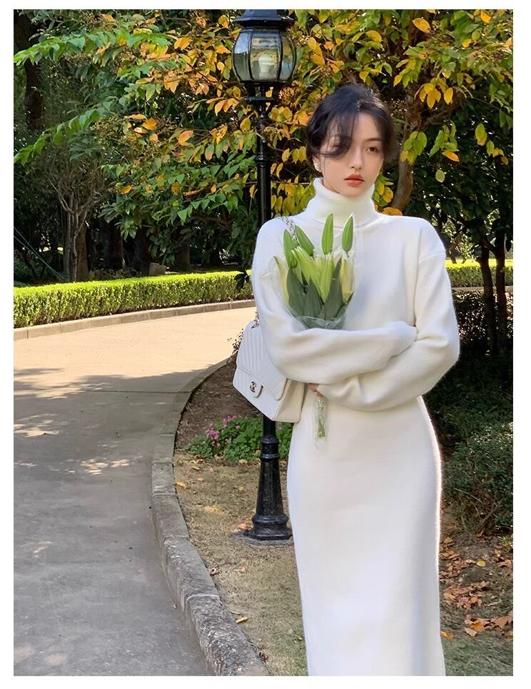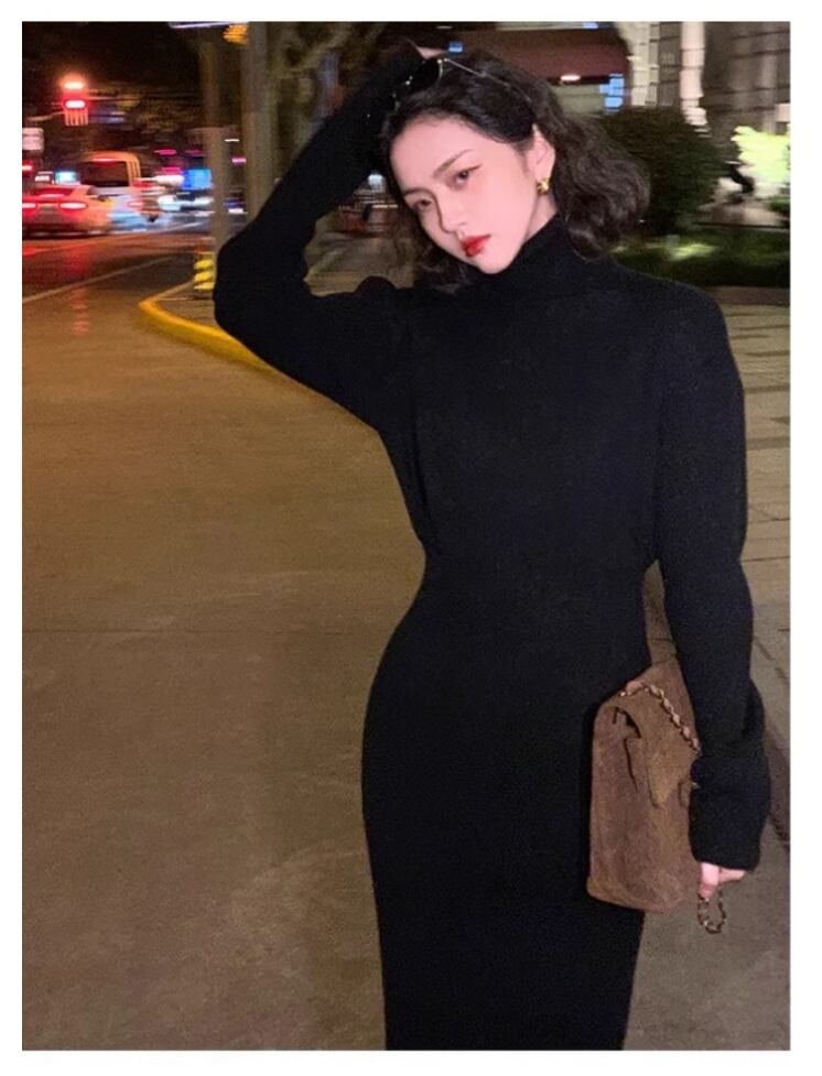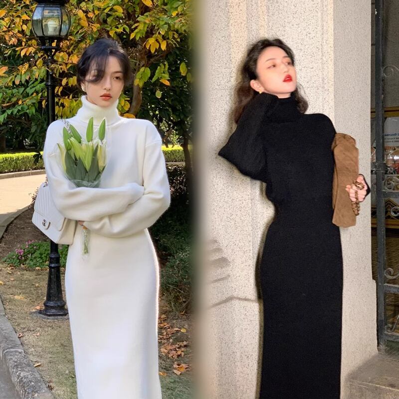 レディース ワンピース ニットワンピ セータードレス ミモレ ロング 長袖 タートルネック スリム 細身 フェミニン スレンダー シースライン ウエストマーク ハイウエスト 厚手 ニット リブニット ストレッチ 伸縮性 かわいい 大人可愛い きれいめ シンプル 上品 おしゃれ こなれ感 ラフ ルーズ エレガント モダン 抜け感 都会的 シック クリーン エフォートレス センシュアル 無地 秋 冬 韓国 体型カバー 普段使い モテ 清楚 トレンド スタイルアップ S M L XL 白 ホワイト 黒 ブラック
