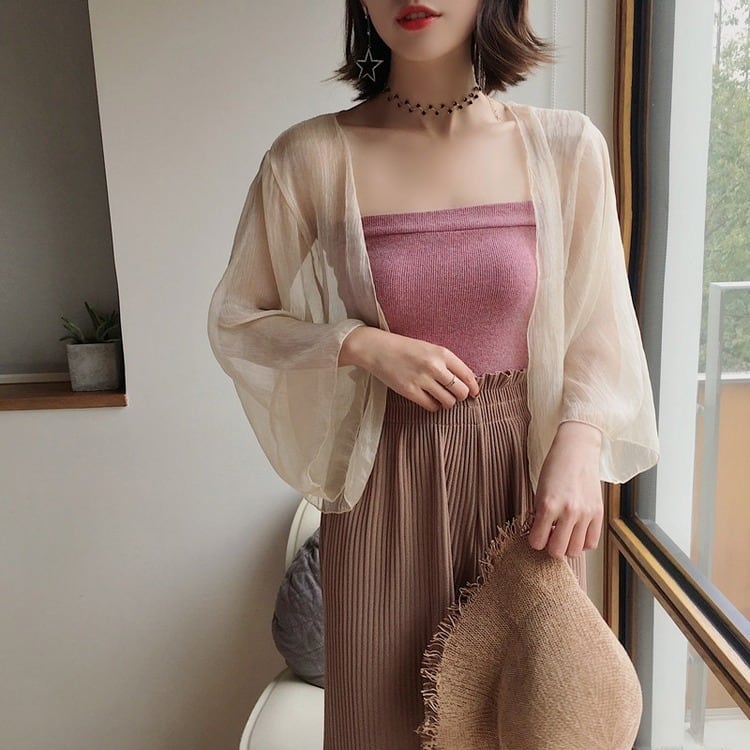 レディース トップス カーディガン ショート 長袖 フレアスリーブ 前開き 透け感 薄手 かわいい 大人可愛い きれいめ シンプル カジュアル 上品 おしゃれ かっこいい こなれ感 ラフ 個性的 クール エレガント ベーシック ナチュラル セクシー 色気 シック 爽やか 可愛い 清潔感 無地 春 夏 デート お出かけ 旅行 海 公園 休日 バカンス ショッピング コーデ 楽ちん 普段使い 着回し モテ 清楚 スタイルアップ 涼しい 高見え 格上げ 日除け 日焼け防止 紫外線対策 フリーサイズ ワンサイズ