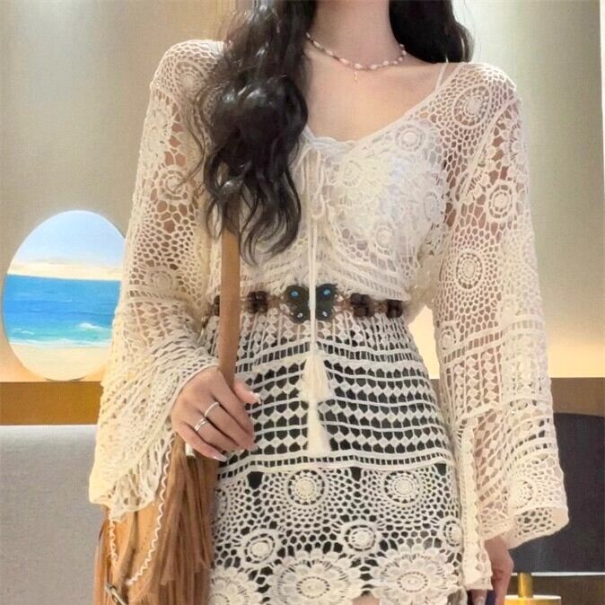 レディース トップス ブラウス 透け 長袖 フレアスリーブ かわいい 大人可愛い きれいめ シンプル カジュアル 上品 おしゃれ かっこいい レトロ アジアン エキゾチック こなれ感 ラフ ガーリー ルーズ 個性的 クール エレガント ナチュラル セクシー 色気 爽やか 可愛い 春 夏 デート お出かけ リゾート 旅行 海 休日 ショッピング コーデ 楽ちん 体型カバー 普段使い 着回し モテ 清楚 涼しい 通気性 日除け 日焼け防止 紫外線対策 ゆったり ゆる フリーサイズ ワンサイズ アプリコット