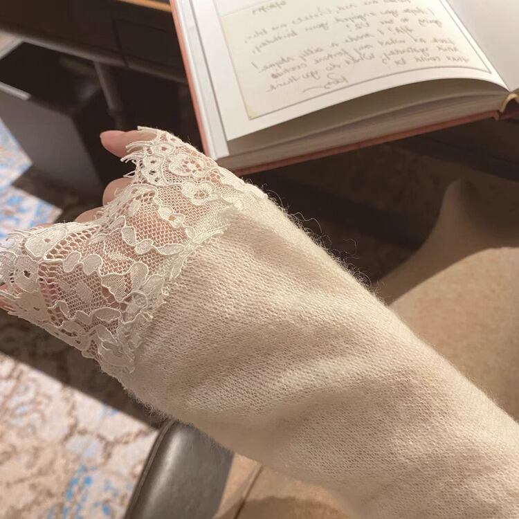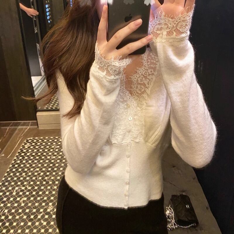 様々なシーンで活躍するこのニットは、エレガントさとカジュアルさを兼ね備えています。薄手で軽やかな素材は、秋のOLスタイルやデート、旅行、休日のお出かけにもぴったり。シンプルなデザインながら、レースのディテールやタイトなシルエットが大人可愛い印象をもたらします。