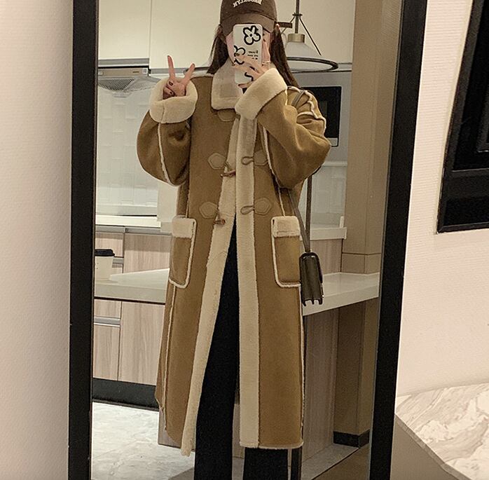 レディース コート 上着 前開き ロング ミドル 長袖 ドロップショルダー ボアスリーブ 襟付き 角襟 ストレート Iライン 切り替え ポケット ハイウエスト 前開き ヴィンテージ 切り替えデザイン バイカラー 配色 飾りボタン ホーンバックル ボア 異素材ミックス かわいい 大人可愛い カジュアル おしゃれ こなれ感 ラフ 主役級 存在感 ヴィンテージ キュート ベーシック アクティブ ナチュラル 無地 冬 クリスマス バレンタイン デート お出かけ 休日 アースカラー 楽ちん 暖かい 体型カバー S