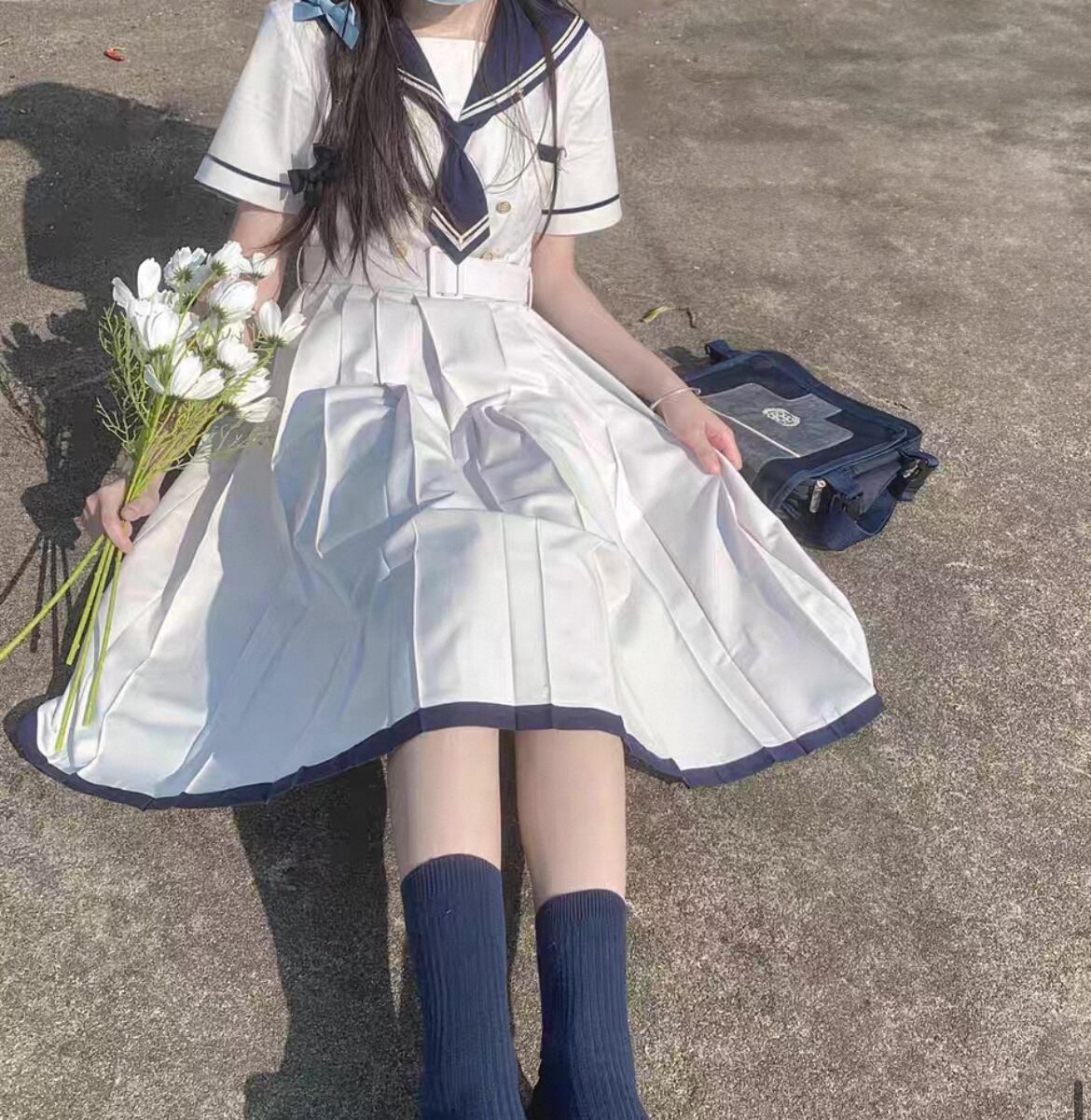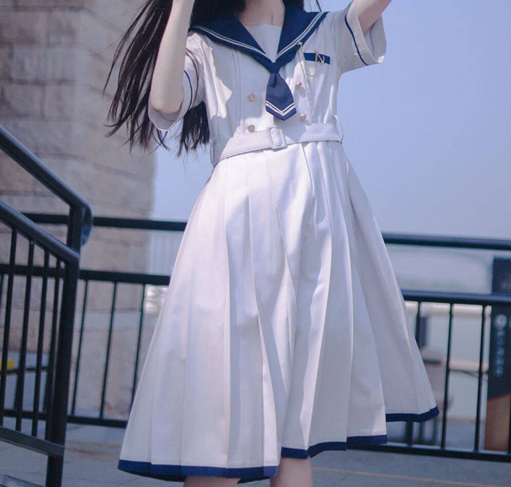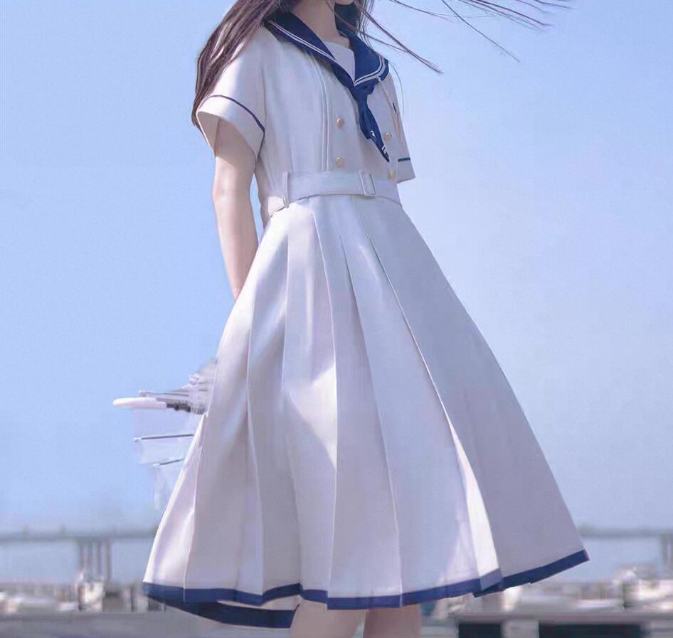 ワンピース 制服 セーラー服 レディース 膝丈 半袖 セーラーカラー りぼんタイ フレア Aライン フェミニン プリーツ 大人可愛い きれいめ シンプル 上品 おしゃれ こなれ感 ラフ ガーリー ルーズ 存在感 抜け感 学生風 無地 春 夏 祭り 文化祭 学園祭 同窓会 学生 学校 通学 パーティー イベント コンサート ライブ コスプレ ステージ パフォーマンス 韓国 オルチャン コーデ 楽ちん 体型カバー 普段使い 着回し モテ 清楚 トレンド スタイルアップ S M L XL ホワイト ネイビー