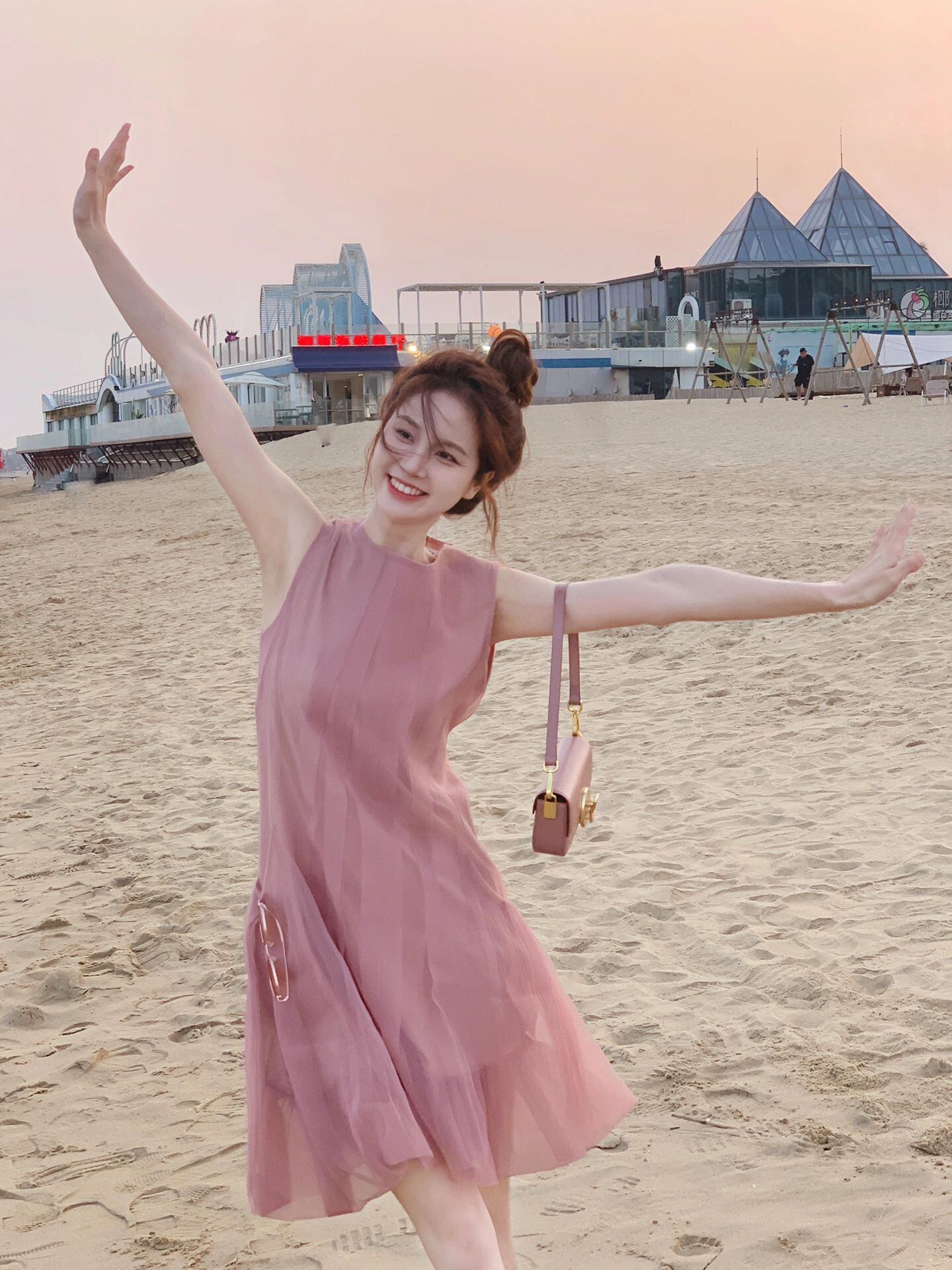 軽やかなシフォン素材を使用したノースリーブワンピースです。