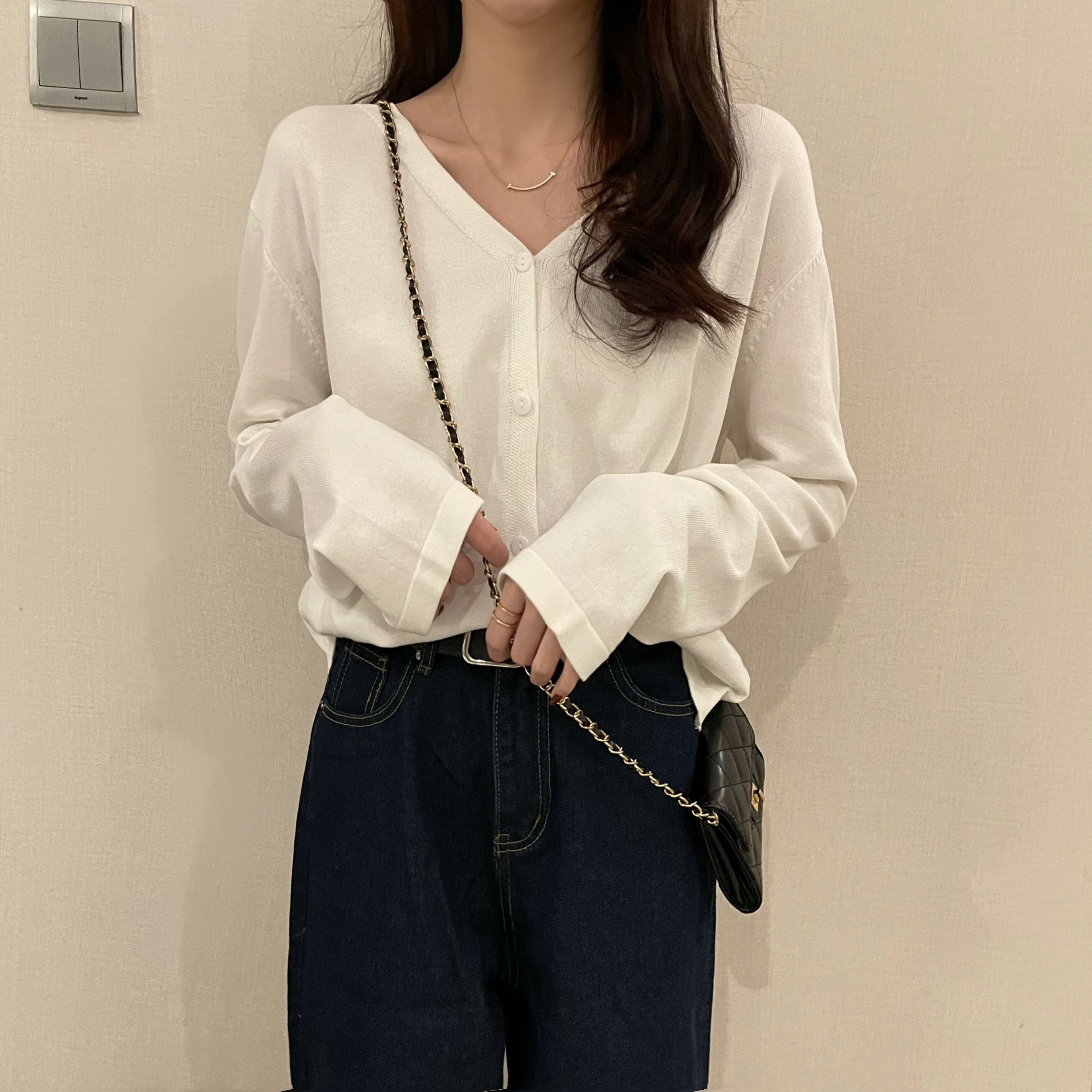 夏ゆったりVネックカーディガン女性 トップス カーディガン ミディアム丈 長袖 萌袖 Vネック ストレート 前開き 大人可愛い きれいめ シンプル カジュアル 大人 大人女子 こなれ感 ラフ 無地 春 夏 10代 20代 30代 40代 OL 通勤 学生 通学 デート お出かけ 公園デビュー 女子会 お泊まり 休日 リゾート 旅行 高原 ガーデン 着回し 普段使い 重ね着 楽ちん L XL 2XL 3XL 4XL 大きいサイズ ゆったり ホワイト ブルー グレー ネイビー