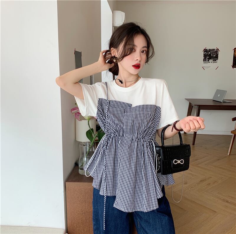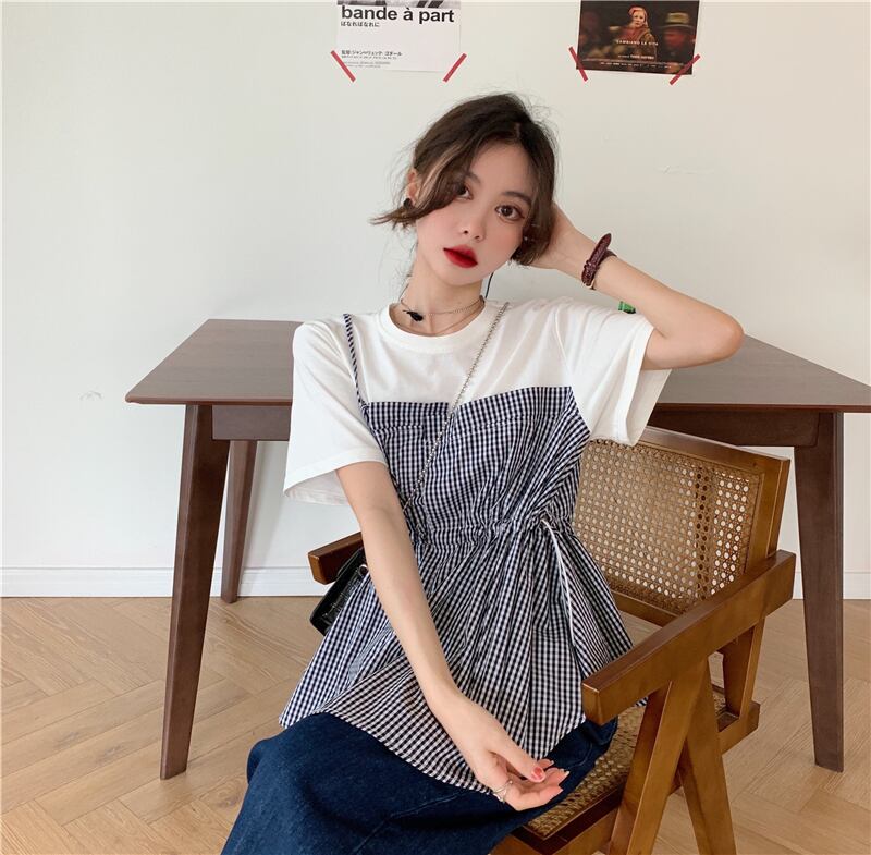 ドッキングTシャツ トップス Tシャツ 袖あり 半袖 ラウンドネック ドッキング ドッキング 綿 かわいい 大人可愛い きれいめ シンプル カジュアル 大人 上品 おしゃれ お洒落 大人可愛い 大人女子 こなれ感 ラフ ラブリー キュート ガーリー 個性的 モダン 主役級 存在感 無地 柄 チェック柄 春 夏 10代 20代 30代 レディース 学生 通学 デート お出かけ 女子会 休日 着回し 普段使い 重ね着 サイズ M L XL 色展開 白 ホワイト