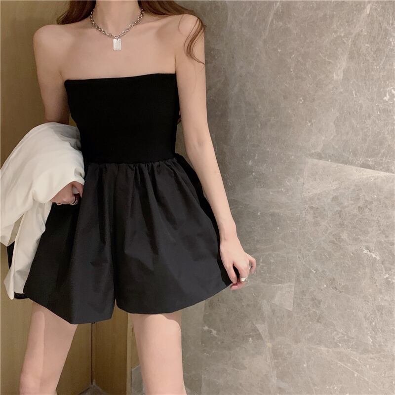 ベアトップがセクシーなショート丈オールインワン。