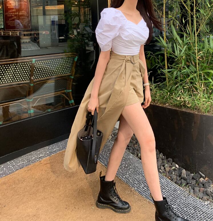 デザイン性抜群なのでシンプルなTシャツなどでもオシャレに仕上がる可愛いボトムです。