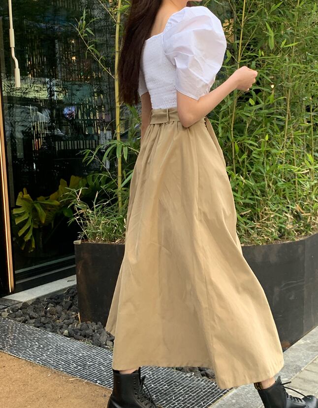 ハイウエスト+リングベルトでトップスINスタイルがバランスよく決まる◎