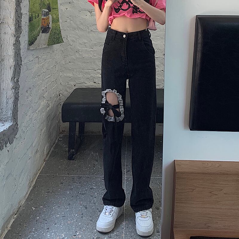 デニムパンツ ボトムス パンツ ロング ロング丈 フレア レース リボン ハイウエスト かわいい 大人可愛い きれいめ シンプル カジュアル 大人 上品 おしゃれ お洒落 大人可愛い 大人女子 こなれ感 ラフ ラブリー キュート ガーリー 個性的 モダン 主役級 存在感 無地 春 夏 秋 10代 20代 30代 レディース 学生 通学 デート お出かけ 女子会 休日 運動 ジム ヨガ 着回し 普段使い 韓国系 オルチャン サイズ S M L XL 色展開 黒 ブラック