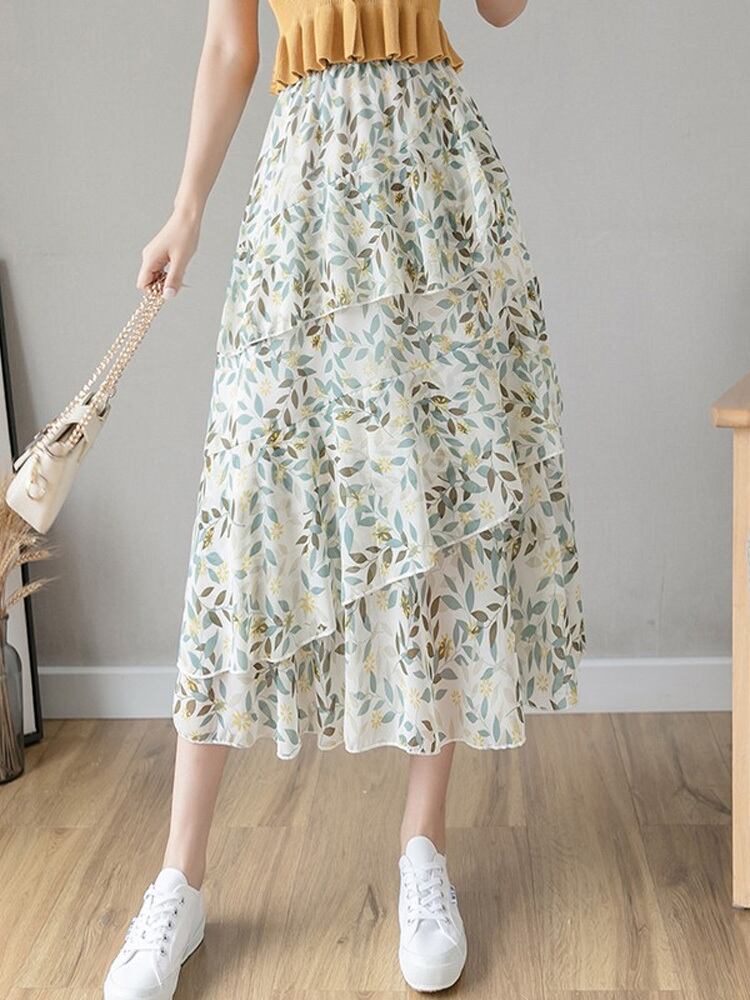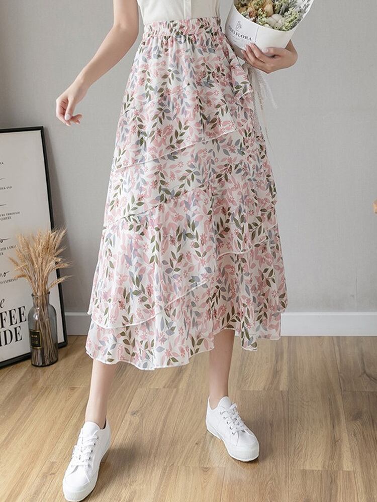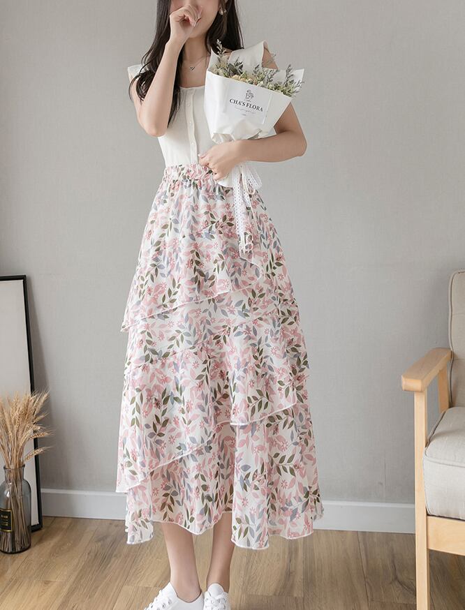 花柄ティアードスカート スカート ボトムス フレアスカート ミモレ ミモレ丈 フレア シフォン フリル ウエストゴム ポリエステル かわいい 大人可愛い きれいめ シンプル カジュアル 大人 上品 おしゃれ お洒落 大人可愛い 大人女子 こなれ感 ラフ ラブリー キュート ガーリー 個性的 モダン 主役級 存在感 柄 花柄 ボタニカル 春 夏 秋 10代 20代 30代 レディース 学生 通学 デート お出かけ 女子会 休日 着回し 普段使い 韓国系 オルチャン 色展開 緑 グリーン ピンク オレンジ