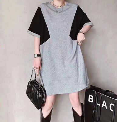 カジュアルなバイカラーデザインがおしゃれなTシャツワンピース。