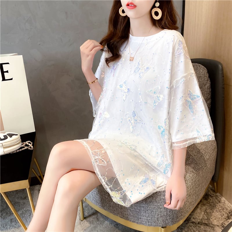 蝶柄ワンピース ワンピース フレアワンピース 膝丈 ひざ丈 袖あり 半袖 ラウンドネック 透け感 シースルー 綿 ポリエステル かわいい 大人可愛い きれいめ シンプル カジュアル 大人 上品 おしゃれ お洒落 大人可愛い 大人女子 こなれ感 ラフ ラブリー キュート ガーリー 個性的 モダン 主役級 存在感 柄 春 夏 10代 20代 30代 レディース 学生 通学 デート お出かけ 女子会 休日 着回し 普段使い 重ね着 韓国系 オルチャン サイズ M L XL 2XL 色展開 白 ホワイト