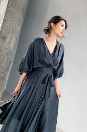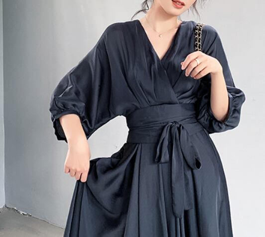 Vネックロングワンピース ワンピース ロング丈 袖あり 7分袖 ボリューム袖 Vネック フレア Aライン リボン ウエストリボン 爽やか 大人スタイル かわいい 大人可愛い きれいめ シンプル カジュアル 大人 上品 おしゃれ レトロ ラブリー キュート 無地 春 夏 秋 10代 20代 30代 40代 50代 レディース メンズ 男女兼用 ママ 女の子 オフィス OL 通勤 学生 通学 お出かけ 公園デビュー 女子会 お泊まり 休日 着回し スタイル デート モテ 定番 S M L グレー