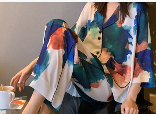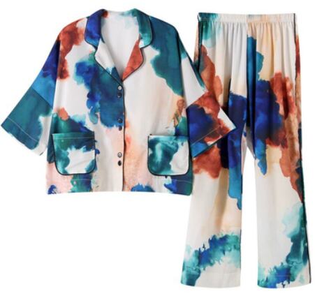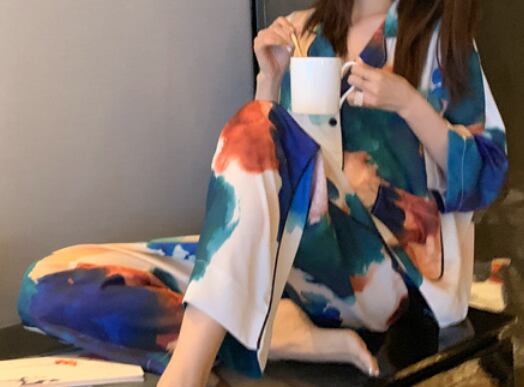 水彩画のように綺麗な柄入りパジャマ上下セットです。