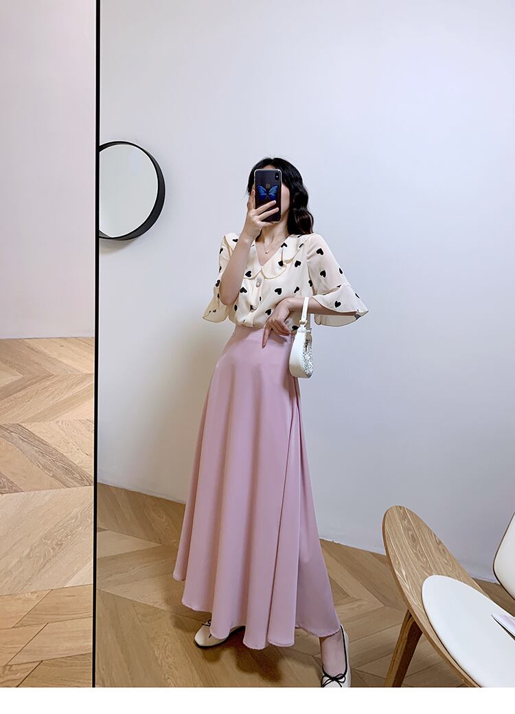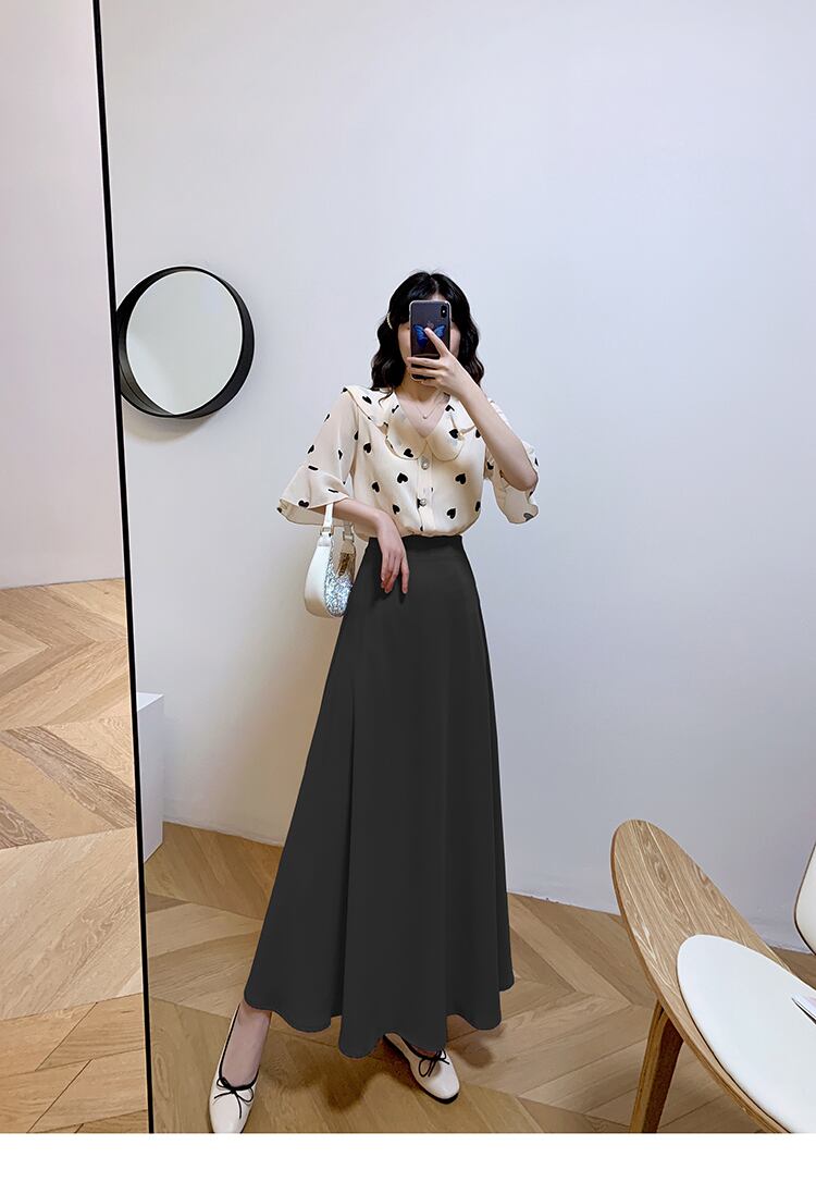 ふわっと広がるフレアが上品なロングスカート。